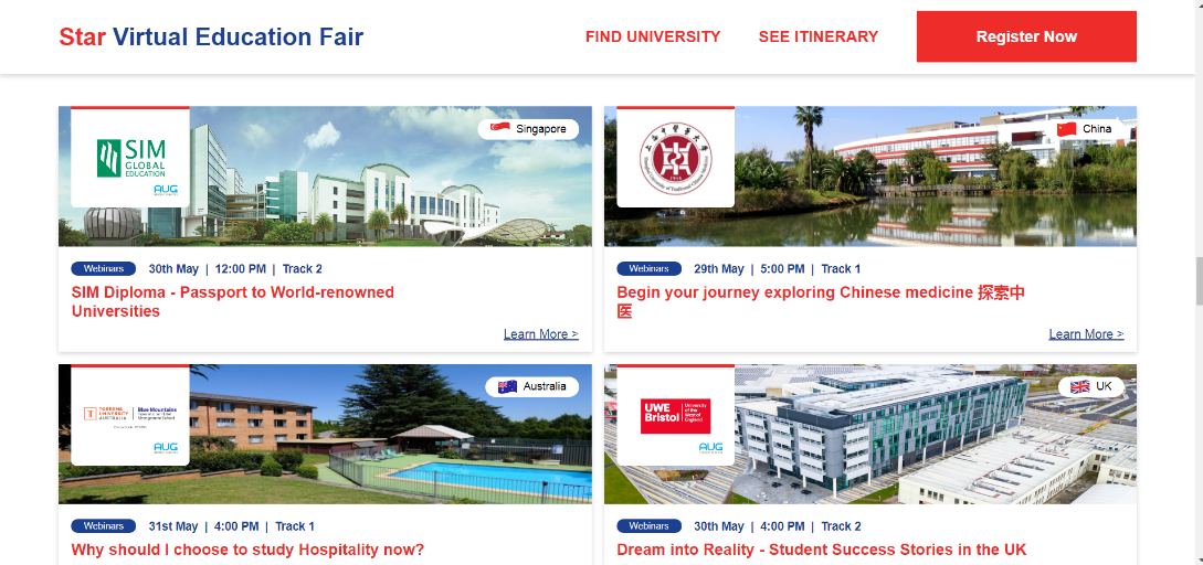 5月29日至31日,2020星报云端教育展(2020 STARVIRTUAL EDUCATION FAIR)举办。该教育展由马来西亚发行量最大的英文日报《星报》主办,有来自马来西亚和全球近50所大学,如澳大利亚墨尔本大学、英国诺丁汉大学等参加。开元集团是国内唯一一所参加了本次教育展的大学。