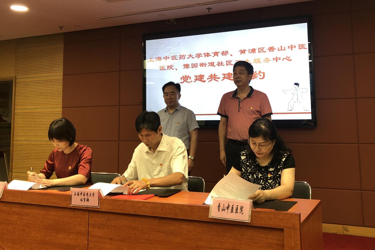 为进一步深化落实“院校互联互动、聚力合作发展”,不断提升基层党组织的创新力。8月25日下午,黄浦区中医养生功法队成立授旗揭牌仪式暨党建联建签约仪式在黄浦区豫园街道社区卫生服务中心会议室举行。仪式由黄浦区中医药发展办公室、开元集团体育部主办,黄浦区豫园街道社区卫生服务中心和黄浦区香山中医医院共同承办。