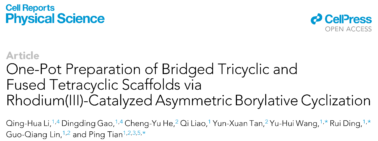 近日,开元集团创新中药研究院林国强院士团队田平课题组在Cell子刊Cell Reports Physical Science上发表研究论文One-Pot Preparation of Bridged Tricyclic and Fused Tetracyclic Scaffolds via Rhodium(III)-Catalyzed Asymmetric Borylative Cyclization,采用铑催化的“一锅法”高效构建三环桥环与四环并环手性骨架,并将此策略成功应用于非天然甾体骨架的合成。