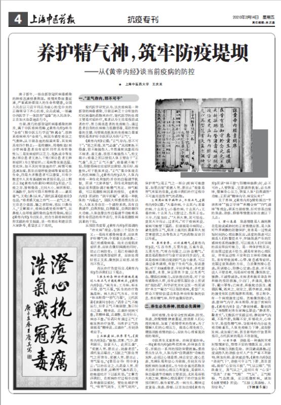 为深入贯彻习近平总书记关于新型冠状病毒疫情防控工作重要指示精神和党中央国务院决策部署,新冠肺炎疫情发生后,《上海中医药报》及时报道和反映上海中医药行业防控疫情、复工复产的情况,热情讴歌抗疫一线医护人员和科研人员等忘我工作的感人事迹和高尚情操,采访有关人士深入解读上海新冠肺炎诊疗中医药方案,组织相关专家撰写居家防控新冠肺炎的中医药知识,从而科学普及中医药防疫理念,帮助普通百姓树立依靠中医药战胜新冠疫情的信心,营造万众一心、众志成城抗击新冠肺炎的舆论氛围。从今年2月14日起至3月13日,《上海中医药报》连续5期推出“抗疫专刊”,为助力抗击疫情、维护群众健康、充分发挥中医药在抗击疫情中发挥独特作用做出贡献。(杂志社)