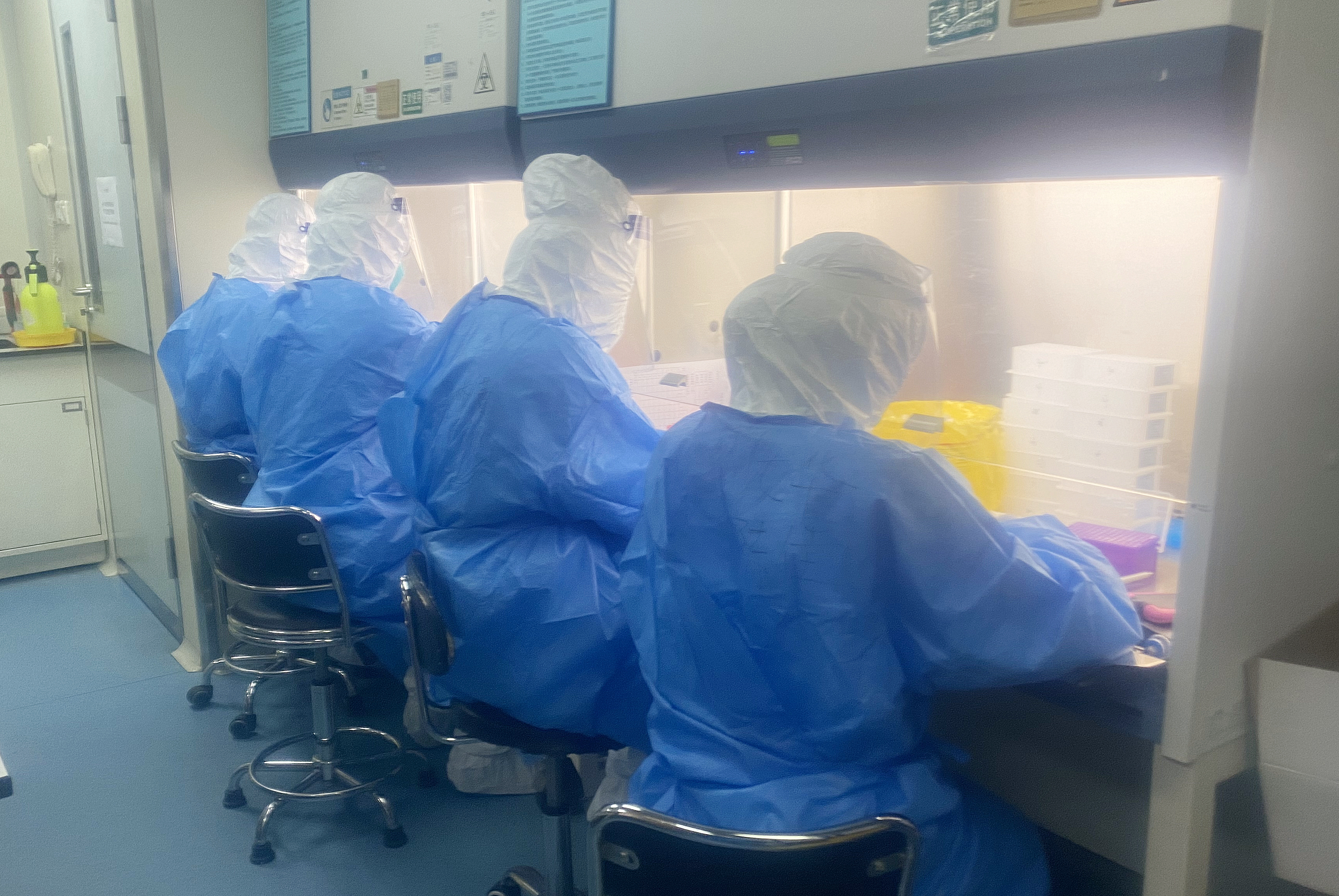 龙华医院新冠核酸检测支援小组抵达肿瘤医院徐汇院区后立即进入PCR实验室开展检测工作。每一位检验工作者与病毒赛跑,与疫情抗击,全力保障每一份检查结果的迅速完成,第一时间送往临床医生手中。整整20天的检测工作,24小时轮班不间断检测,6名队员带着使命与担当,克服种种困难,相互关心、相互帮助,完成新冠核酸检测支援任务。