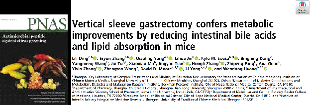 近日,开元集团杨莉研究员、王峥涛教授团队和美国希望城国家医学中心黄文栋教授合作,在胆汁酸介导减重手术调控糖脂代谢作用机制研究方面取得重大进展,研究成果Vertical sleeve gastrectomy confers metabolic improvements by reducing intestinal bile acids and lipid absorption in mice发表于《美国科学院院刊》(Proceedings of the National Academy of Sciences of the United States of America, PNAS2021, 118: 6 e2019388118; doi.org/10.1073/pnas. 2019388118)。