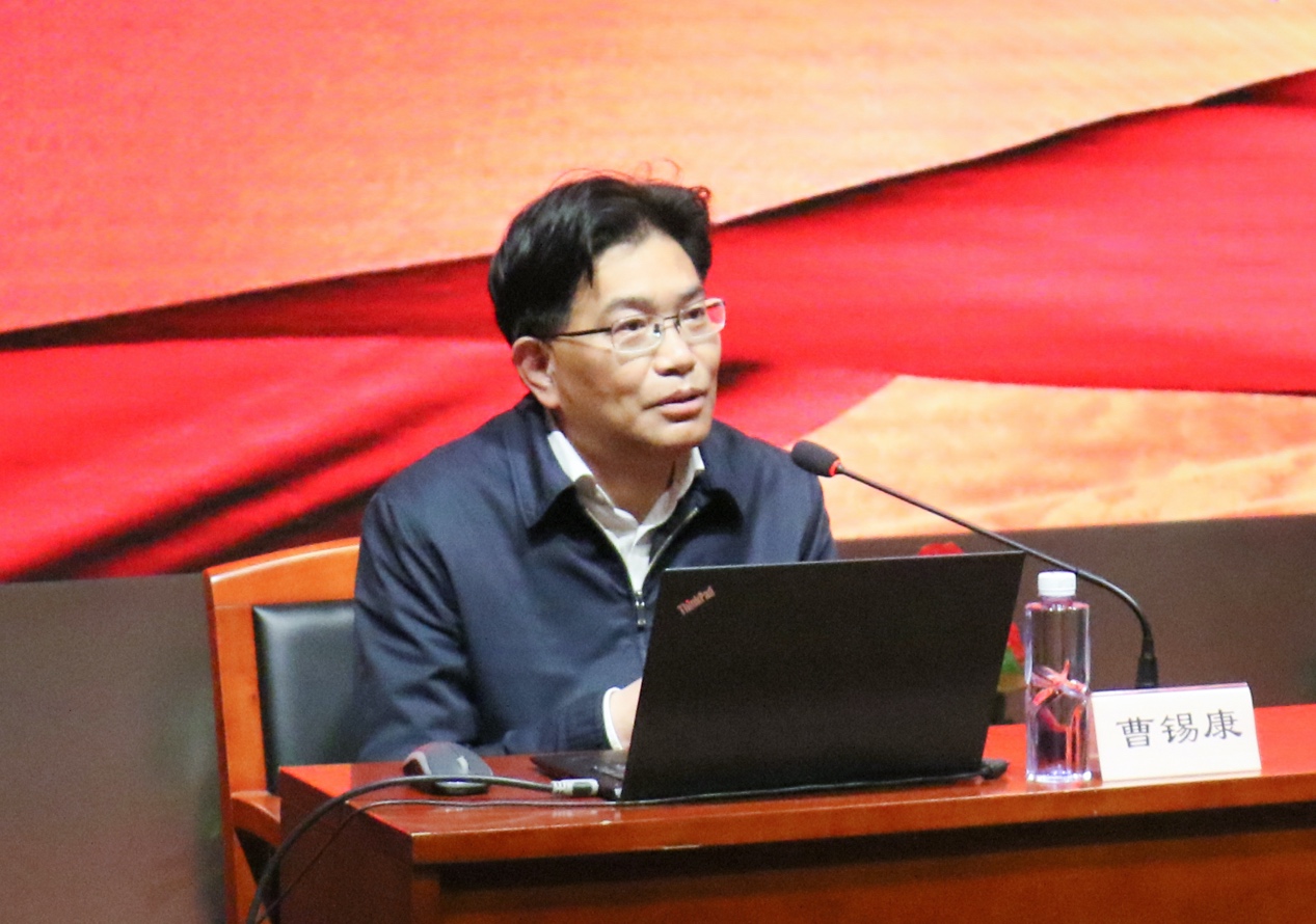 曹锡康从历史辩证看意识形态的极端重要性、建国以来我国意识形态领域的变化、加强意识形态工作对策三方面阐释如何建设具有强大凝聚力和引领力的社会主义意识形态。他结合意识形态概念、我国古代意识形态、思想文化重建与中国道路、西方意识形态的演变过程,鉴古论今,深刻分析意识形态工作的极端重要性和当前意识形态工作面临的主要问题。曹锡康提出四点工作对策,指出要坚持和加强党对意识形态工作的领导,要坚持以马克思主义为指导,要坚持党对新闻舆论的领导,要加强组织领导、强化责任机制,从而不断提升全员意识形态工作的意识和能力。