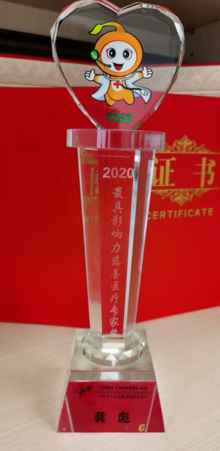 近日,中华少年儿童慈善救助基金会为附属曙光医院消化医学部主任龚彪颁发了“2020最具影响力慈善医疗专家奖”。