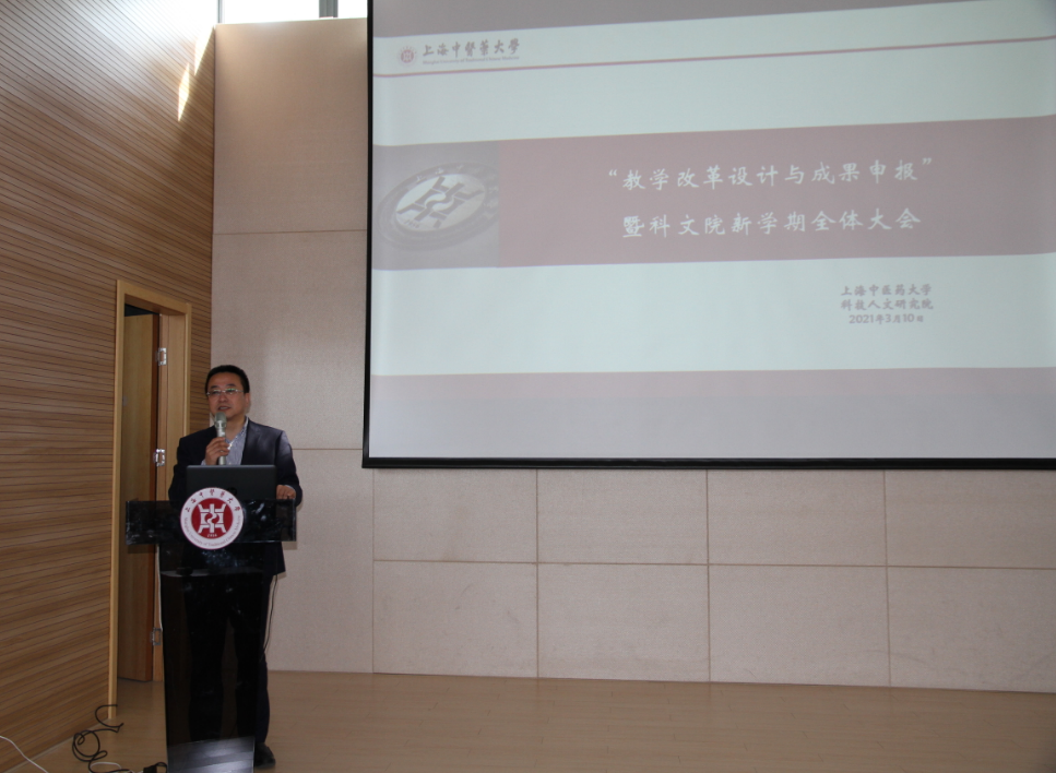 科技人文研究院举行“教学改革设计与成果申报”专题报告会暨新学期全体教师大会