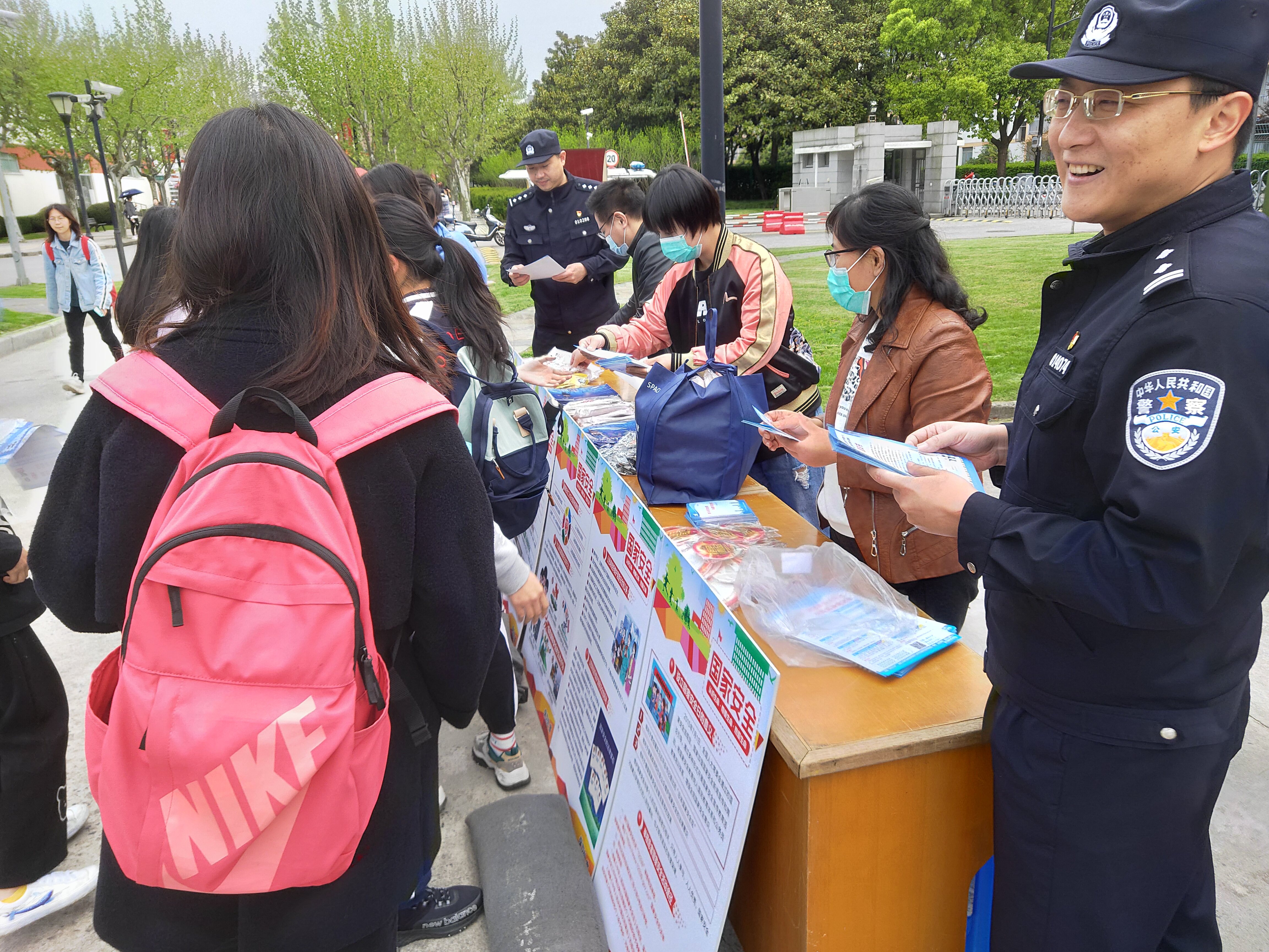 学校保卫处联合张江高校派出所、张江镇平安建设办公室在开元集团大学生创新创业实践园学生活动广场开展现场宣传工作。通过摆放国家安全知识展板,发放防范网络电信诈骗、火灾防范、交通安全、毒品知识等宣传资料及相关纪念品,使广大师生深入了解总体国家安全观。近千名师生参与活动。