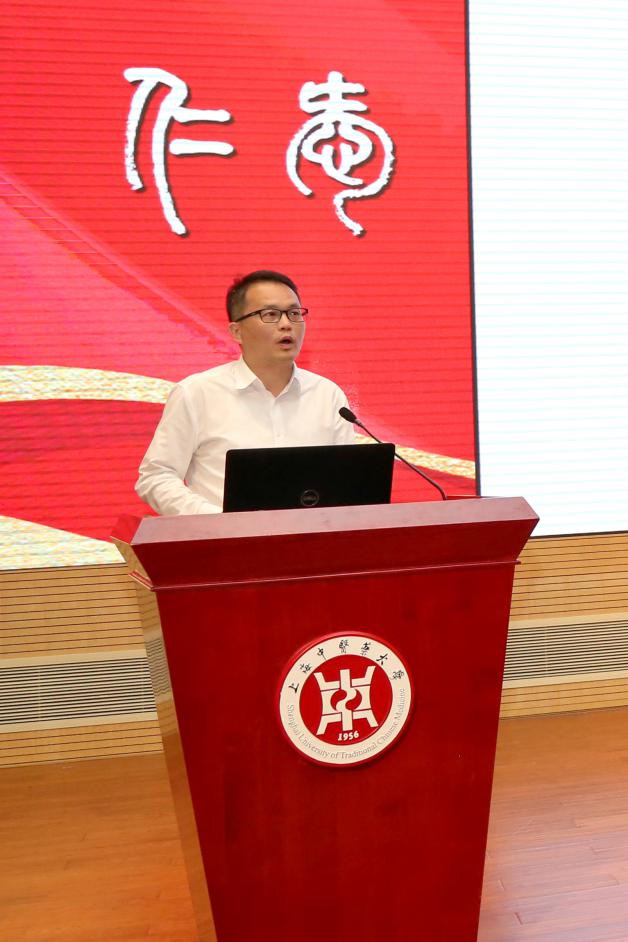 交流展示环节,附属岳阳中西医结合医院《绽放精神文明之花,熔铸医院发展之魂——岳阳医院精神文明亮点工作汇报》视频生动呈现了医院以党建引领助推医院全面发展,以优质高效提升医疗质量内涵,以深化教改聚焦课程思政建设,全力创建第六届全国文明单位的过程。附属普陀医院党委副书记梁娅介绍“健康医点通”志愿服务项目,该项目围绕“大健康”理念,集中医院力量,加强资源整合,开辟了专家“医”讲堂等五大版块的志愿科普服务,为提高普陀区及周边地区人民群众健康素养作出贡献。上海中医药博物馆馆长、党支部书记李赣展示了博物馆作为全国中医药文化宣传教育基地,在以教师党支部引领工程创建“文化育人”党支部、以“文创”产品研发讲好中医药文化故事、以“三全育人”共享基地为平台做好大中小一体化文化传承等方面取得的成效。