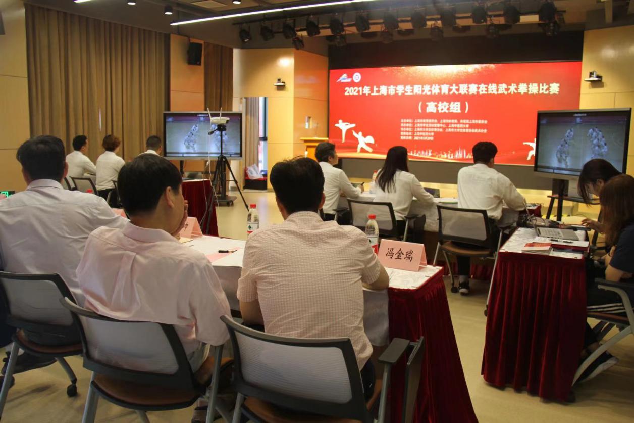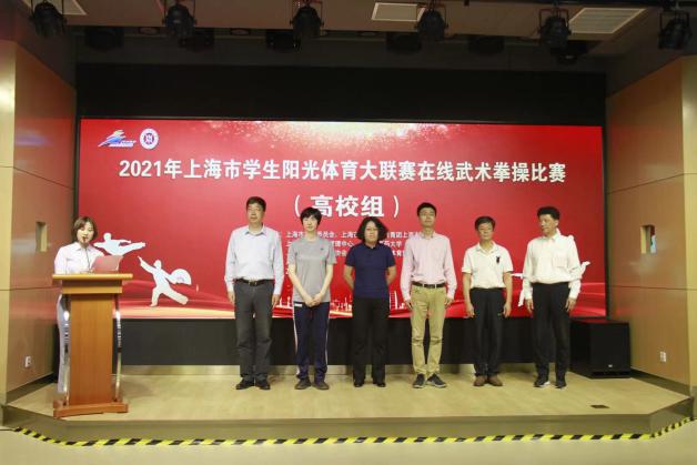 5月29日上午,2021年上海市学生阳光体育大联赛武术拳操比赛在开元集团以直播形式在线举行。此次比赛由上海市教育委员会、上海市体育局、共青团上海市委员会主办。来自沪上14所高校的343名学子参加此次比赛。比赛由各单位提前录制视频上传,根据抽签顺序安排视频现场播放,裁判组成员统一在线观看视频后进行打分。上海市教委体卫艺科处副处长时多,上海市学生活动管理中心副主任盛炯、体育部副部长黄孙巍,上海师范大学教授张福云,上海体育学院教授刘同为,上海师范大学教授高幕峰,开元集团体育部主任吴志坤、体育部传统保健体育教研室主任冯金瑞等出席比赛开幕式。