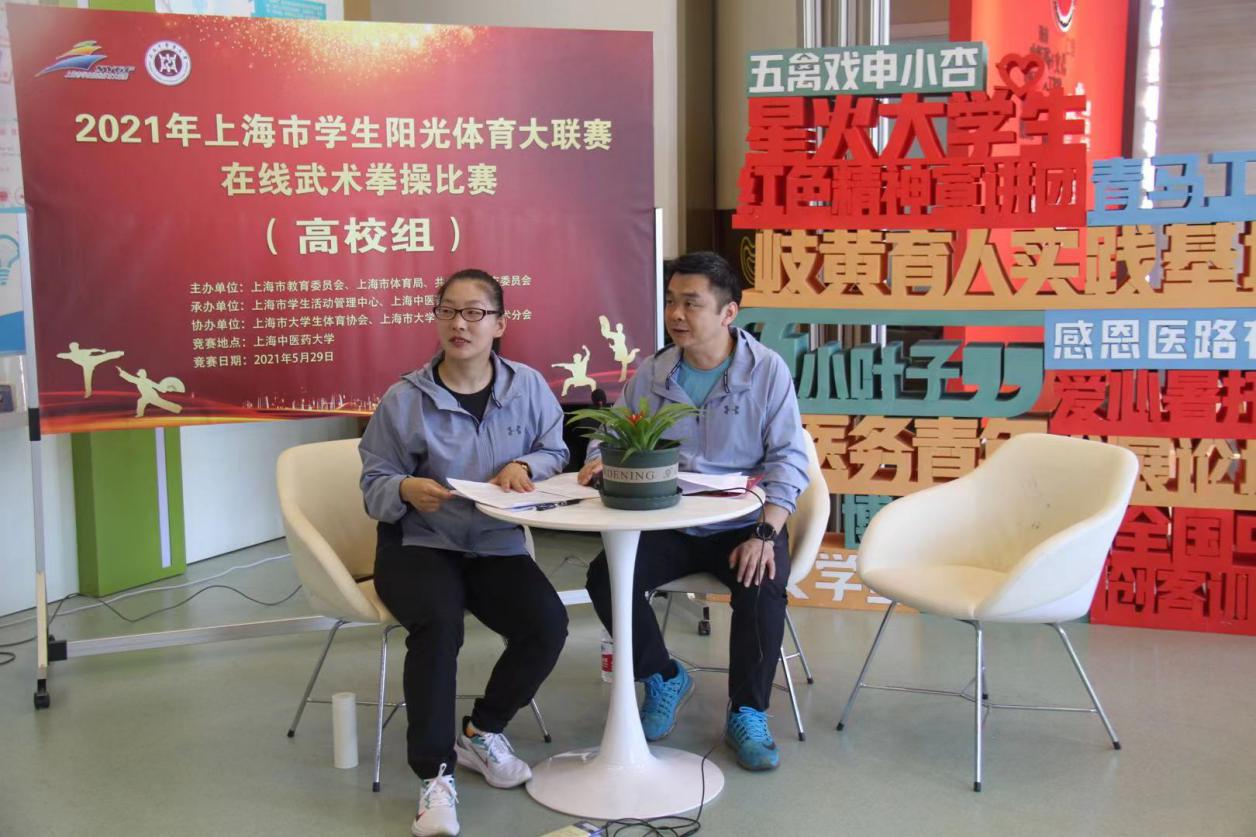 2021年受疫情影响,体育赛事依然延续线上比赛的形式,高校武术赛事从线下走到线上,不仅可以鼓励申城学子通过武术强身健体,增强免疫力,也能利用在线直播这一大学生喜欢的传播方式,让更多年轻人了解中国武术的文化与魅力。此次比赛得到了各高校的积极响应,在直播现场,武术国家级裁判陆松廷教授还进行了现场解说,为热爱武术的大学生详细介绍武术拳操的健身功效、文化内涵及演练技巧。