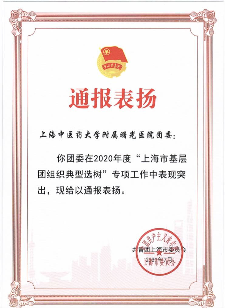 附属曙光医院团委获上海市基层团组织典型选树通报表扬