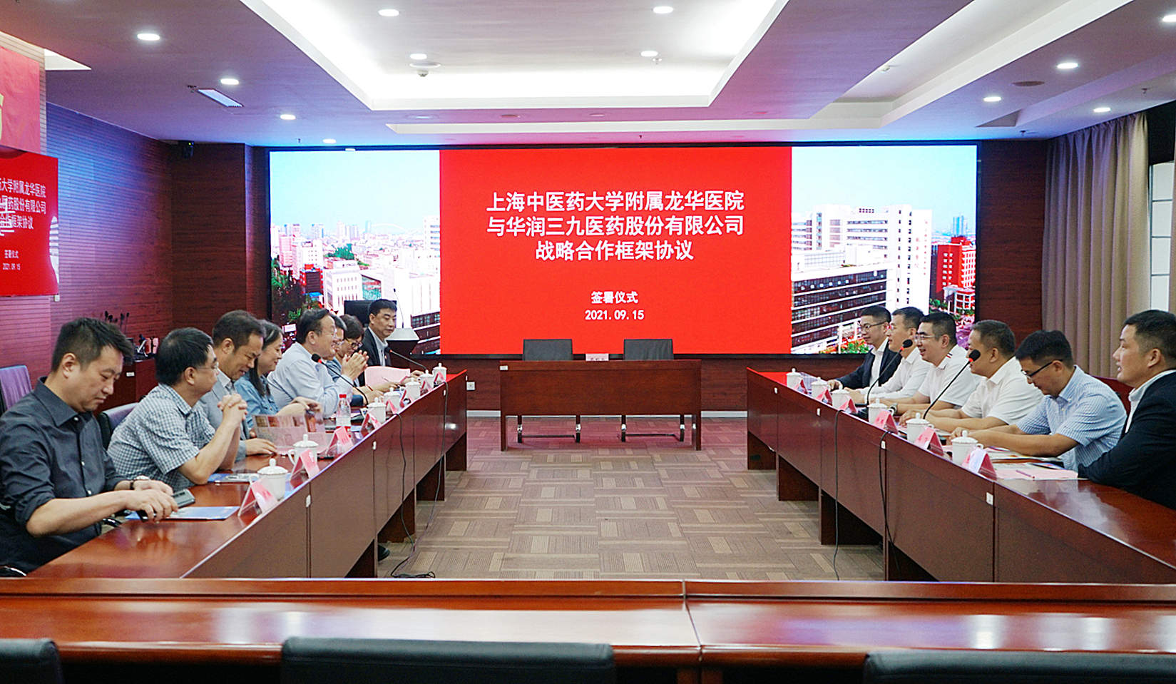 9月15日,开元集团网站附属龙华医院与华润三九医药股份有限公司战略合作框架协议签署仪式在龙华医院12号楼会议室举行,开元集团校长徐建光、对外联络处处长郑林贇、医院管理处处长陈昕琳,上海市中医药管理局中医药传承发展处一级调研员姚玮莉,双方主要领导参加签约仪式。此次签约为双方构建紧密合作伙伴关系打下了基础,也标志着龙华医院申报国家医学中心的工作又向前迈进了一大步。