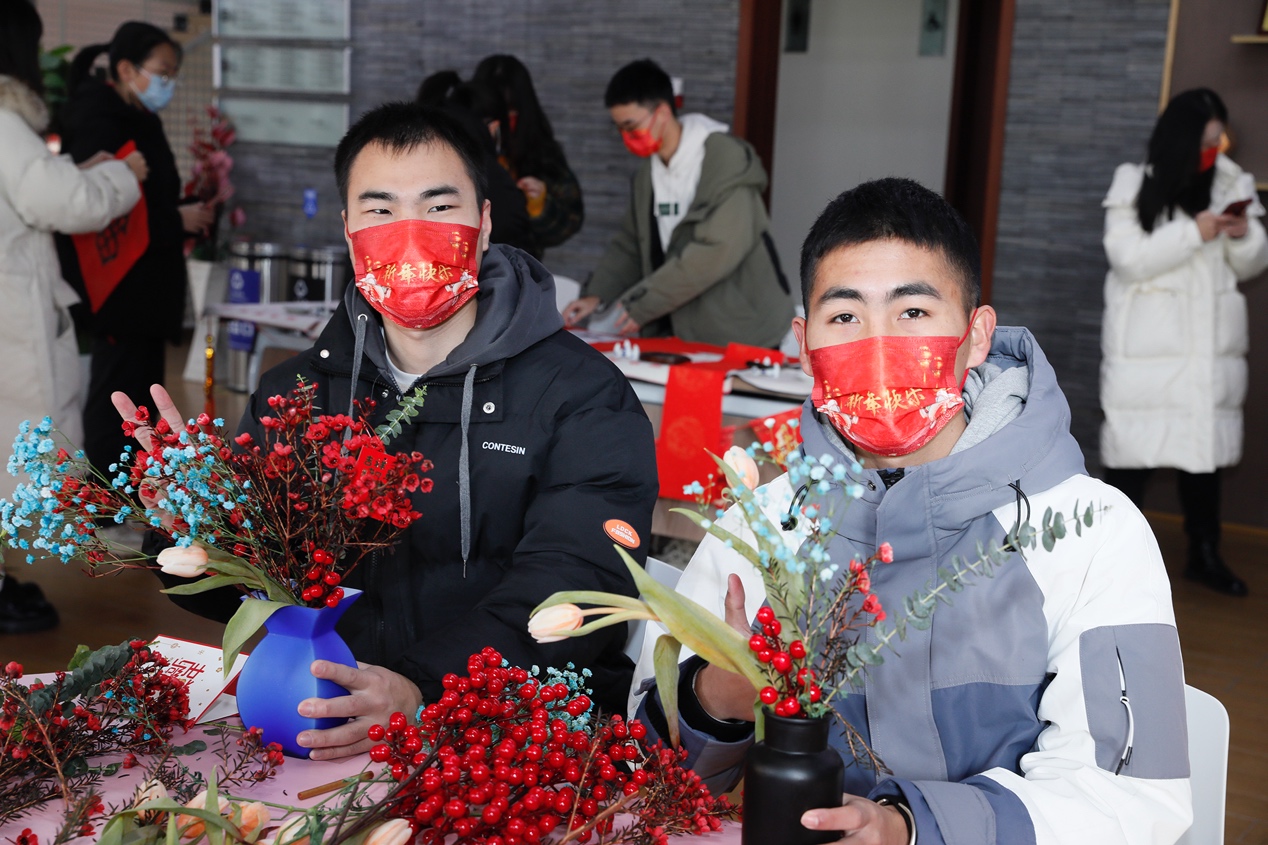 春节前夕,学校为留校学生打造了“一站式”社区过年“家”体验,让这里的年味和家里一样温暖红火。一张张虎年福字暖意融融,一串串大红灯笼高高挂起,一件件萌虎玩偶寓意吉祥。