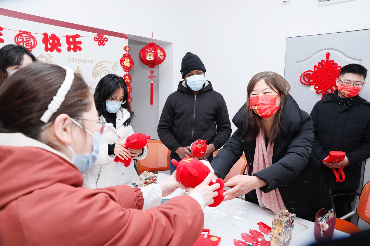 此次制作的香囊是“虎年”中医药防疫香囊,药方源自中医经典古籍,具有预防疾病、净化心绪的功效,寓意着学生们在新年“健康相伴、好运常在”。“虎年练虎戏”也是此次春节活动的重头戏,“虎戏”是中医传统功法“五禽戏”的第一部分,属木主肝,能疏肝理气、舒经活络,留校师生一起练习新春“虎”戏,能强健体魄、科学防疫,在传承发扬中华优秀传统文化的同时,讨一个虎年吉祥的好彩头。 “跟着大家一起打虎戏、做香囊,这个中国年太有意思了”,来自格林纳达的国际学生瑞文这样说道。