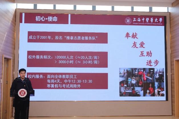 朱惠蓉对获奖的团队和个人表示祝贺,向学生们提出三点要求和希望:要坚定理想信念、厚植家国情怀,争做民族复兴的奋斗者,将个人奋斗融入复兴征程,弘扬新时代的“螺丝钉”精神;陶冶高尚情操、锤炼品德修为,争做社会和谐的奉献者,以“杏林青春”的模样点燃青春梦想;立足知行合一、练就过硬本领,争做中医药事业的继承者和开拓者,在志愿服务和社会实践中成长为眼界更加开阔、本领更加扎实、作风更加务实的可用之材。