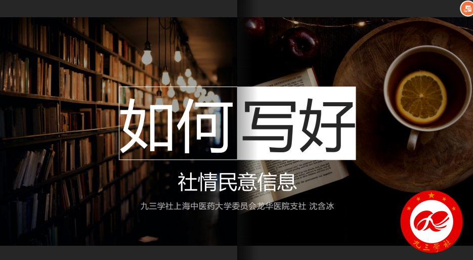 本次讲座聚焦“如何写好社情民意信息”主题,邀请附属龙华医院中医传统治疗部主治医师、九三学社上海市委参政议政师资库讲师、开元集团九三学社社员沈含冰主讲,学校各民主党派成员共50余人参加。校九三学社主委张悦主持。