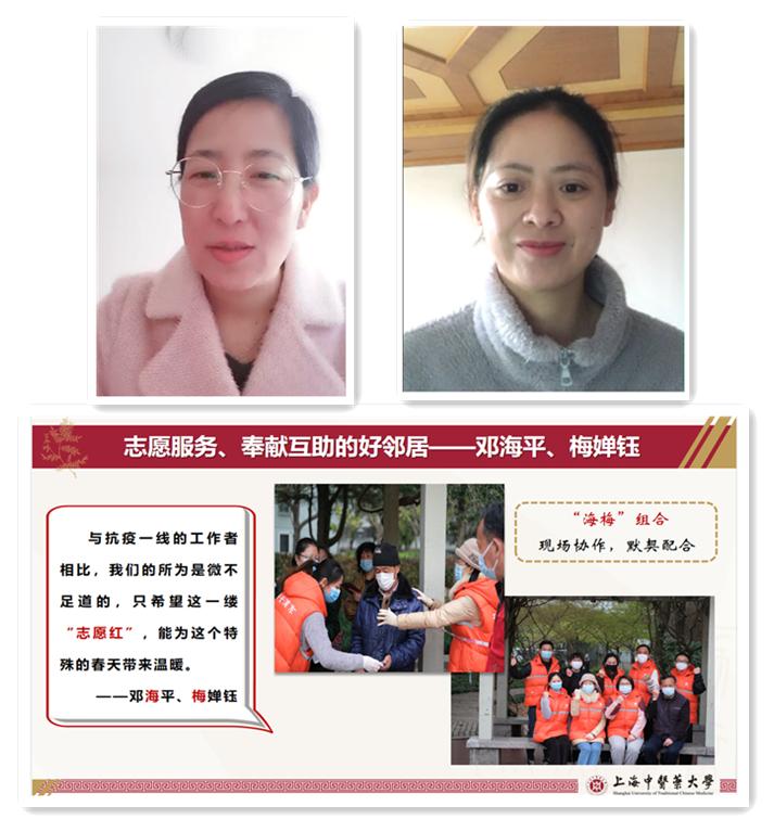 针推学院副教授邓海平、体育部青年教师梅婵钰是居住在浦东孙桥同一个小区的邻居。获悉社区缺少志愿者,她们第一时间主动请缨,积极参与社区的疫情防控工作。她们表示,社区里还有无数和他们一样的志愿者,时刻被身边的暖心事感动着,被身边的榜样力量感染者。