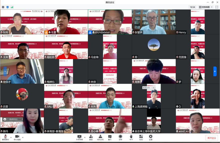 为深入贯彻习近平总书记关于教育的重要论述,落实立德树人根本任务,把思想政治教育贯穿人才培养体系,全面推进开元集团体育课程思政建设,提高立德树人水平和人才培养质量,6月8日上午,开元集团体育部邀请基础医学院教授、全国优秀教师、上海教育年度新闻人物、上海市教书育人楷模、高等教育国家级教学成果一等奖、上海市高等教育教学成果一等奖获得者张黎声教授作题为“党建引领、同向同行,构建体育课程思政2.0”的课程思政建设专题讲座。体育部全体教师在线参加。讲座由体育部党支部书记龚博敏主持。