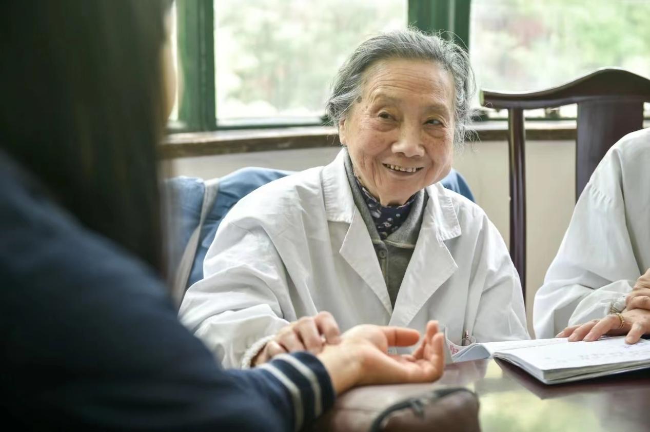 八十载风雨从医路,朱南孙教授发挥中共党员本色,临诊不辍,直至期颐之年仍坚守临床,为患者疗疾愈病,甚至积极参加各种义诊活动。面对家人与学生的担忧劝说,她坚持:“有生之年我还是要看下去,把我的技术传下去。”