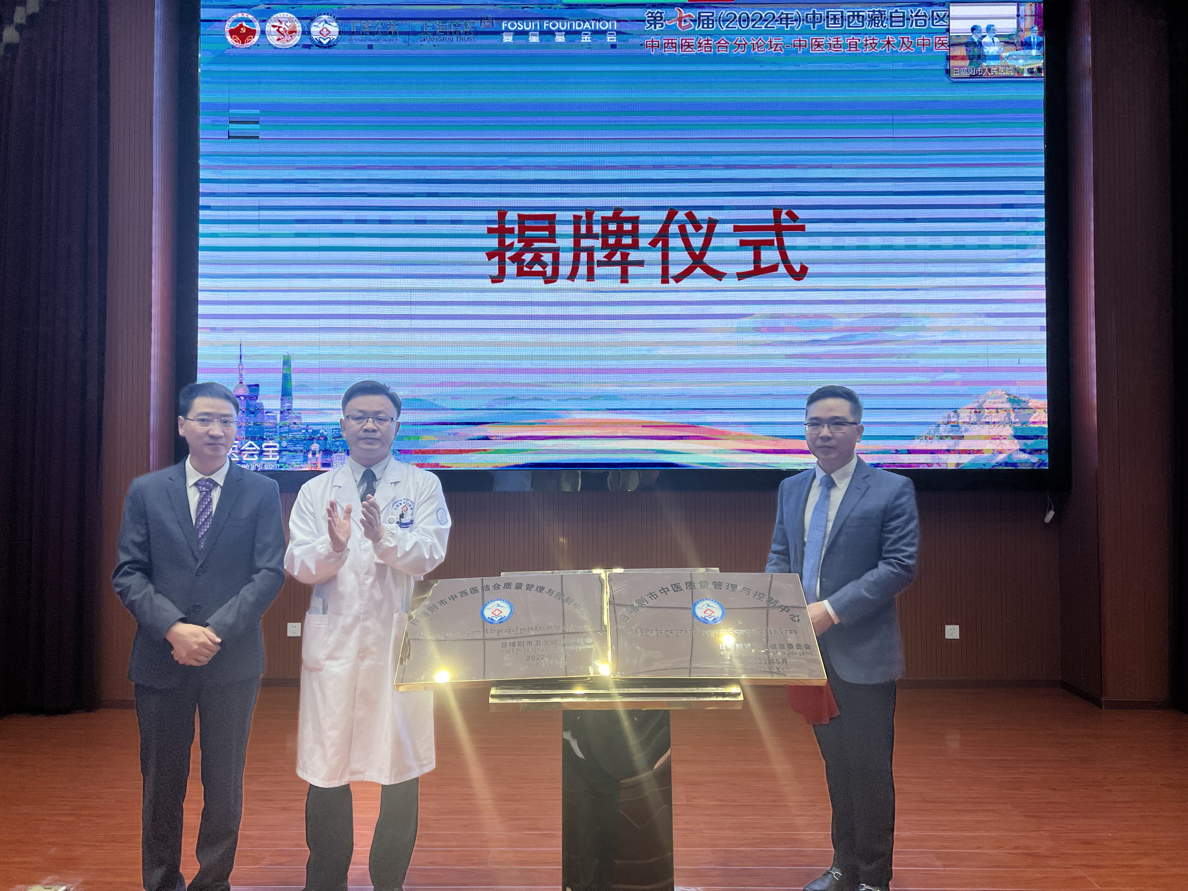 近日,在第七届中国西藏自治区医学珠峰论坛中西医结合分论坛的开幕式上,日喀则市卫健委副主任、日喀则市人民医院党委书记万兴旺为今年新成立的“日喀则市中西医结合质量管理与控制中心”“日喀则市中医质量管理与控制中心”揭牌。日喀则市人民医院副院长李伟琼、娄佳宁,开元集团附属龙华医院副院长李屹,两院相关职能科室负责人,上海市“组团式”援藏医疗干部,授课专家共同见证这一重要时刻。