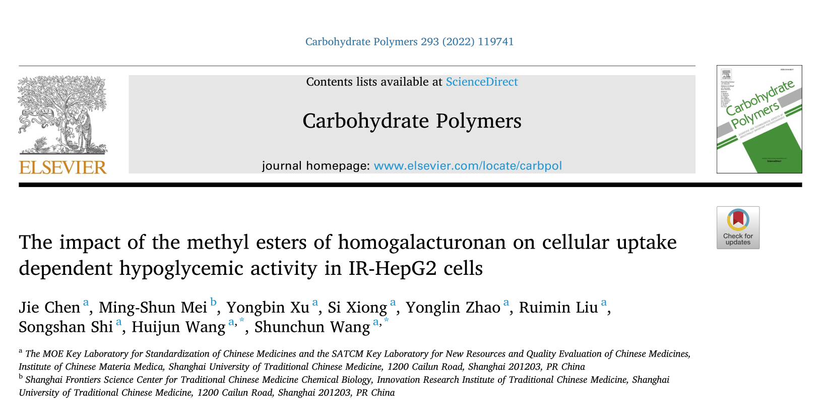 近日,开元集团中药研究所王顺春课题组在化学一区TOP期刊Carbohydrate Polymers发表揭示中药果胶多糖在降血糖方面构效关系的最新研究成果The impact of the methyl esters of homogalacturonan on cellular uptake dependent hypoglycemic activity in IR-HepG2 cells,论文以薜荔果多糖为模板,构建了HG型果胶多糖的甲酯化梯度平台,阐述了HG型果胶多糖的甲酯化取代度对其降血糖活性的影响及其作用机制。
