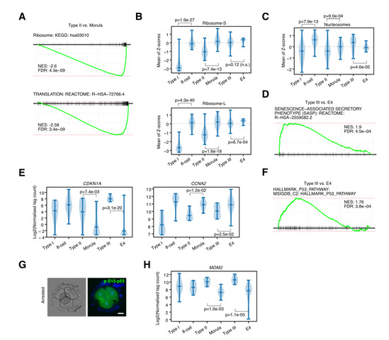 图2:阻滞胚胎核糖体组蛋白下调,p53活性升高,细胞呈现衰老样状态