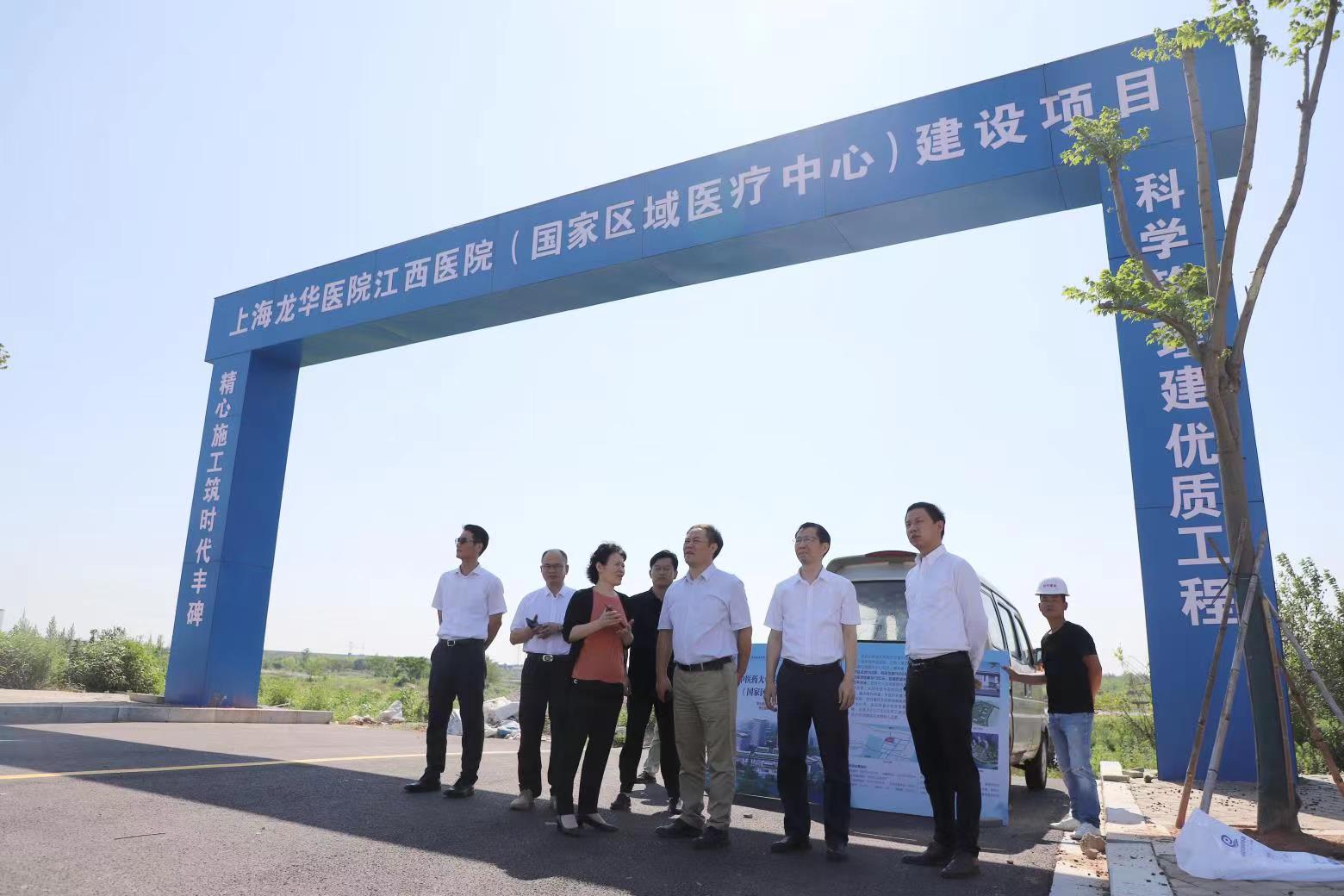 陈跃来一行来到龙华医院江西医院项目工地,了解项目用地现状和周边环境,观摩项目医院沙盘,详细了解项目规划。他指出,国家区域医疗中心医院在疑难危重症诊断与治疗、高层次医学人才培养、高水平医学研究等方面代表全国顶尖水平,要高起点规划、高标准建设好项目医院,发挥国家区域医疗中心辐射带动作用,让老百姓在家门口享受国内一流的健康医疗服务。作为一所独立运行的三级甲等医院,要充分考虑、合理布局发热门诊、感染性疾病科的建设,努力在协助地方解决重大公共卫生问题中发挥重大作用。
