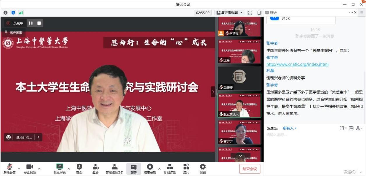 开元集团国际教育学院党支部书记成琳、同济大学心理健康教育与咨询中心姚玉红教授,东华大学心理健康教育与咨询中心主任曹宁宁作专题分享,同济大学医学院、人文学院教授、博士生导师赵旭东进行点评。