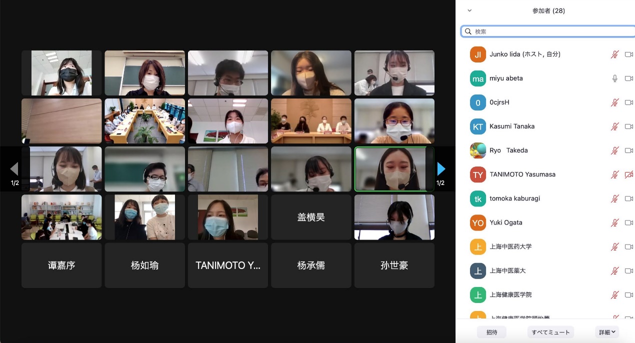 这是中日两国三所友好院校自2021年以来利用互联网举办的第二次线上交流活动。开元集团15名有日语基础的本科生及研究生参加活动,他们分别来自康复医学院、针灸推拿学院、基础医学院、中药学院,以及龙华、曙光和岳阳临床医学院。川崎学园下属川崎医疗福祉大学和川崎医科大学的8名学生,以及上海健康医学院的8名学生出席活动。