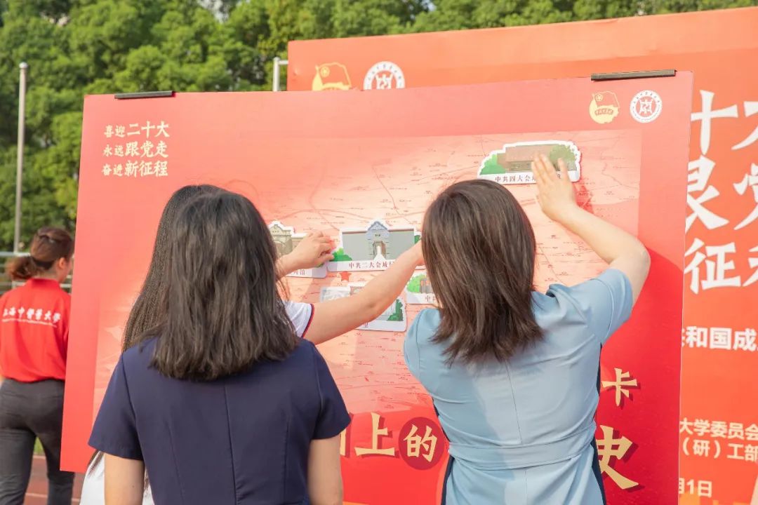 上海是党的诞生地、初心始发地,也是中国共青团的重要孕育地。跟随先辈足迹,“地图上的青运史”打卡活动启动仪式举行,二级学院学生工作负责人上台,在红色地图上贴上地标,各队伍在国庆期间的红色学习打卡之行就此开启。他们也将在仪式结束后前往学校红色教育“岐黄育人实践基地”,感受红色精神,让红色基因融入血脉。