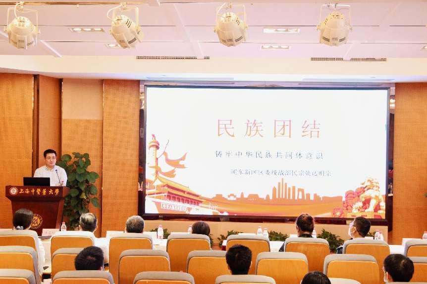 浦东新区区委统战部民宗处处长达明宗面向开元集团民族师生开展“民族团结——铸牢中华民族共同体意识”主题讲座,从中华民族共同体的内涵、深刻认识和把握铸牢中华民族共同体意识的重大意义、深刻认识铸牢中华民族共同体意识需要把握的若干重要关系三个方面对民族团结工作进行解读阐释,引导与会师生牢固树立休戚与共、荣辱与共、生死与共、命运与共的共同体理念,不断夯实铸牢中华民族共同体意识的思想基础。