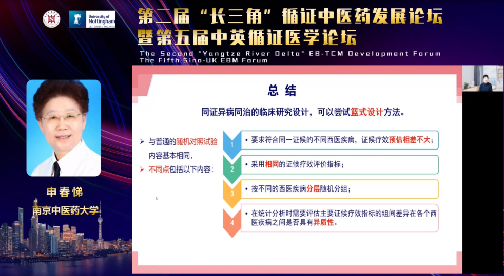 申春悌教授总结了同证异病同治的临床研究设计,提出可以尝试篮式设计方法。