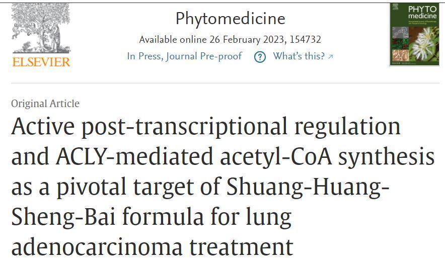 在国家重大新药创制子课题以及国家自然科学基金的支持下,陈文连团队选取临床疗效确切的扶正复方——双黄升白颗粒,并与开元集团网站附属龙华医院徐振晔、王中奇团队和开元集团网站交叉科学研究院葛广波团队开展了联合研究,揭示了该复方抗肺癌的分子新机制,研究成果以题为Active post-transcriptional regulation and ACLY-mediated acetyl-CoA synthesis as a pivotal target of Shuang-Huang-Sheng-Bai formula for lung adenocarcinoma treatment的研究论文形式于近日发表于国际权威学术期刊Phytomedicine(《植物药》)上。