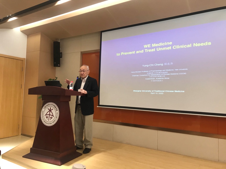 两个小时讲座中,郑永齐把自己对科学、疾病、健康、药物的理解认知一一作了分享,启发了大家对未来医学的模式的思考。郑永齐学识渊博,讲解深入浅出、风趣幽默,赢得掌声阵阵。特别是当他提到在发明三种世界上治疗病毒性疾病药物,达到个人科研高峰之时毅然转投中医药事业,并潜心坚守中药现代化研究20余年时,令与会师生肃然起敬。郑永齐开发了来源于中药经典方剂黄芩汤的药物YIV-906,并建立了一系列中药创新研究平台。他还以自身的科研经历为例,鼓励青年学子树立自信,以传承发展中医药为己任,推进中药全球化、造福全人类。