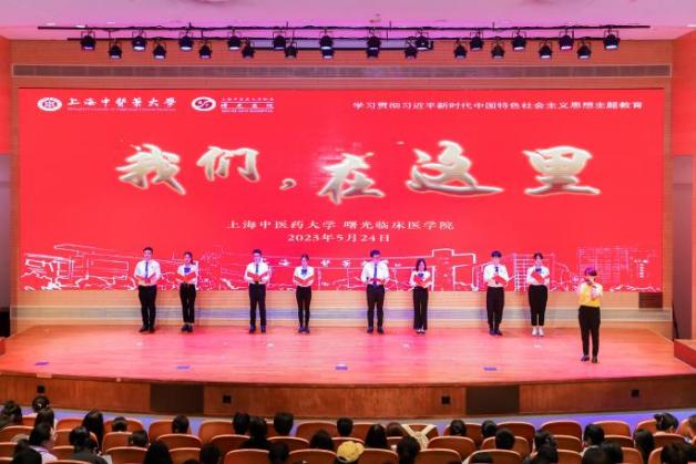 基础医学院代表队带来《诗词礼赞二十大,中医青春正飞扬》,一展新时代中医青年的凌云壮志、澎湃激情,青年们正描绘着辉煌的中国。曙光临床医学院代表队带来《我们,在这里》,响应新时代党和人民的召唤,敬佑生命,救死扶伤,甘于奉献,大爱无疆。