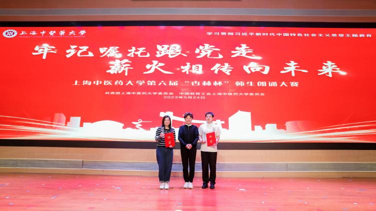 12支队伍以朗诵的形式表达了爱党、爱国、爱校的深情,选手们富有真情实感的朗诵,得到了评委和观众的强烈共鸣,现场掌声不断,充分展现了中医青年的青春风采。