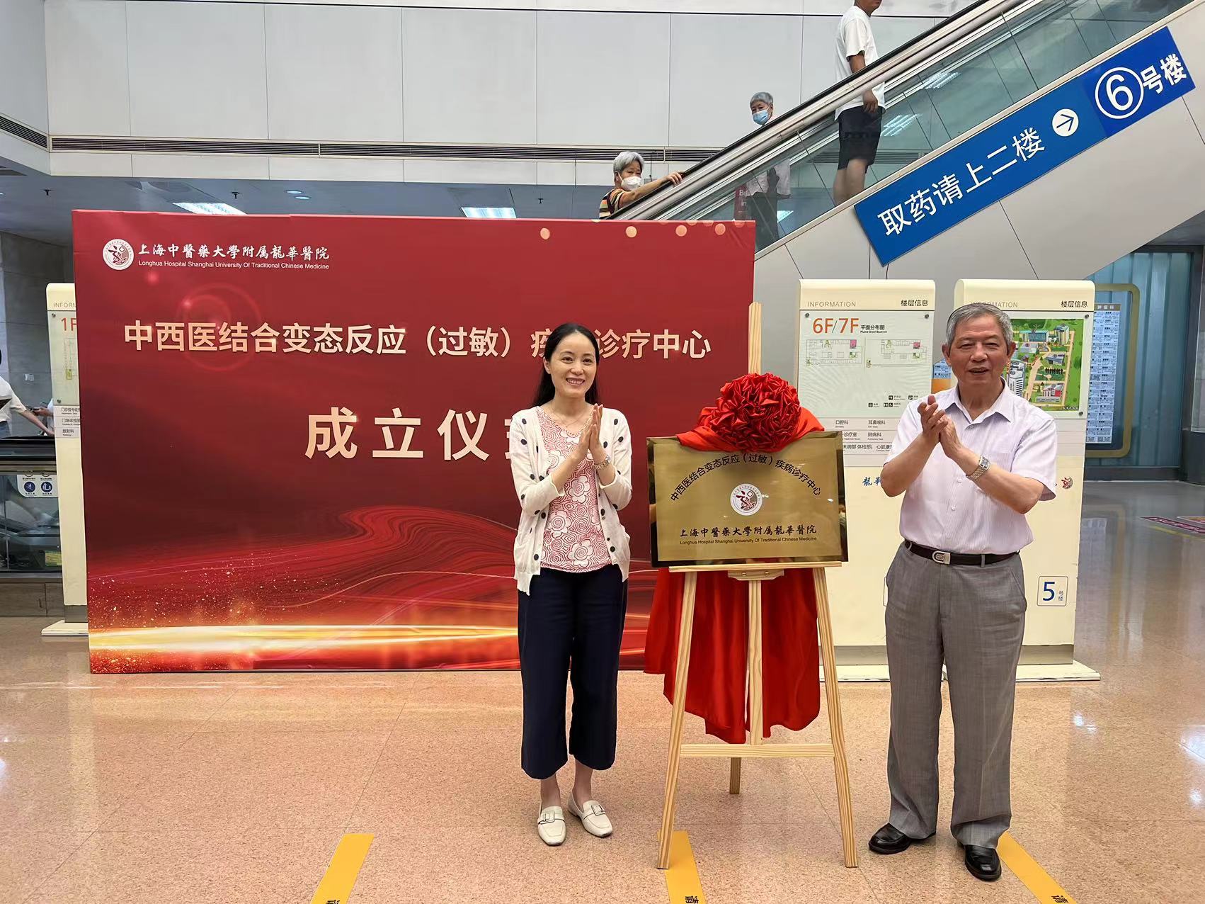 陆金根、管红叶为“中西医结合变态反应(过敏)疾病诊疗中心”揭牌。