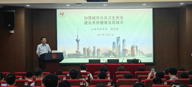培训班首场讲座特邀上海市政协文化卫生体育委员会主任、上海市医学会会长邬惊雷作《加强城市公共卫生安全,建设美丽健康宜居城市》专题授课。邬惊雷从公共卫生的起源、我国公共卫生情况、取得的成就、目前面临的挑战,系统阐述了持续加强城市公共卫生体系建设,建设美丽健康宜居城市,推进“健康中国”战略的重要举措和重大意义。