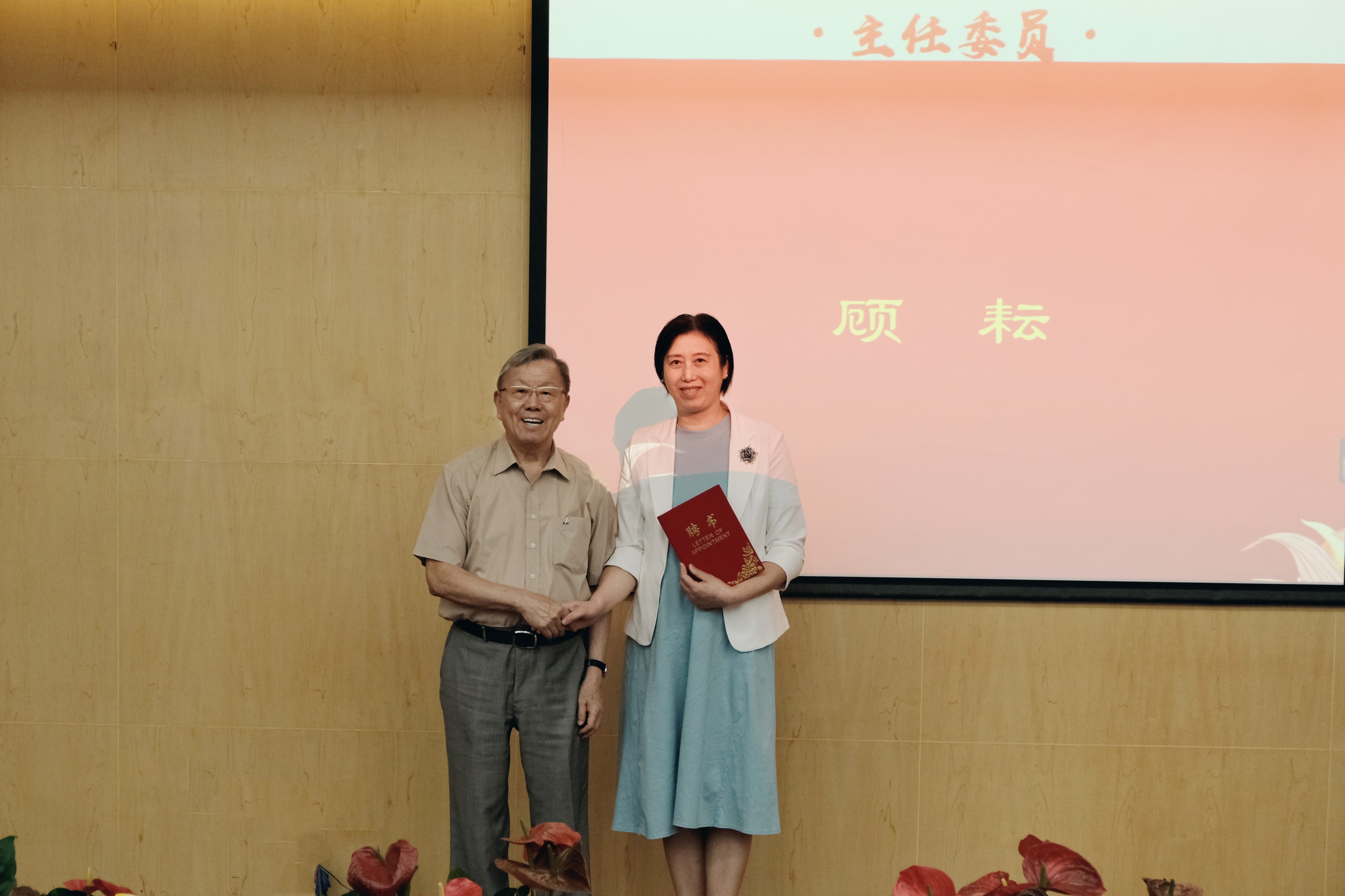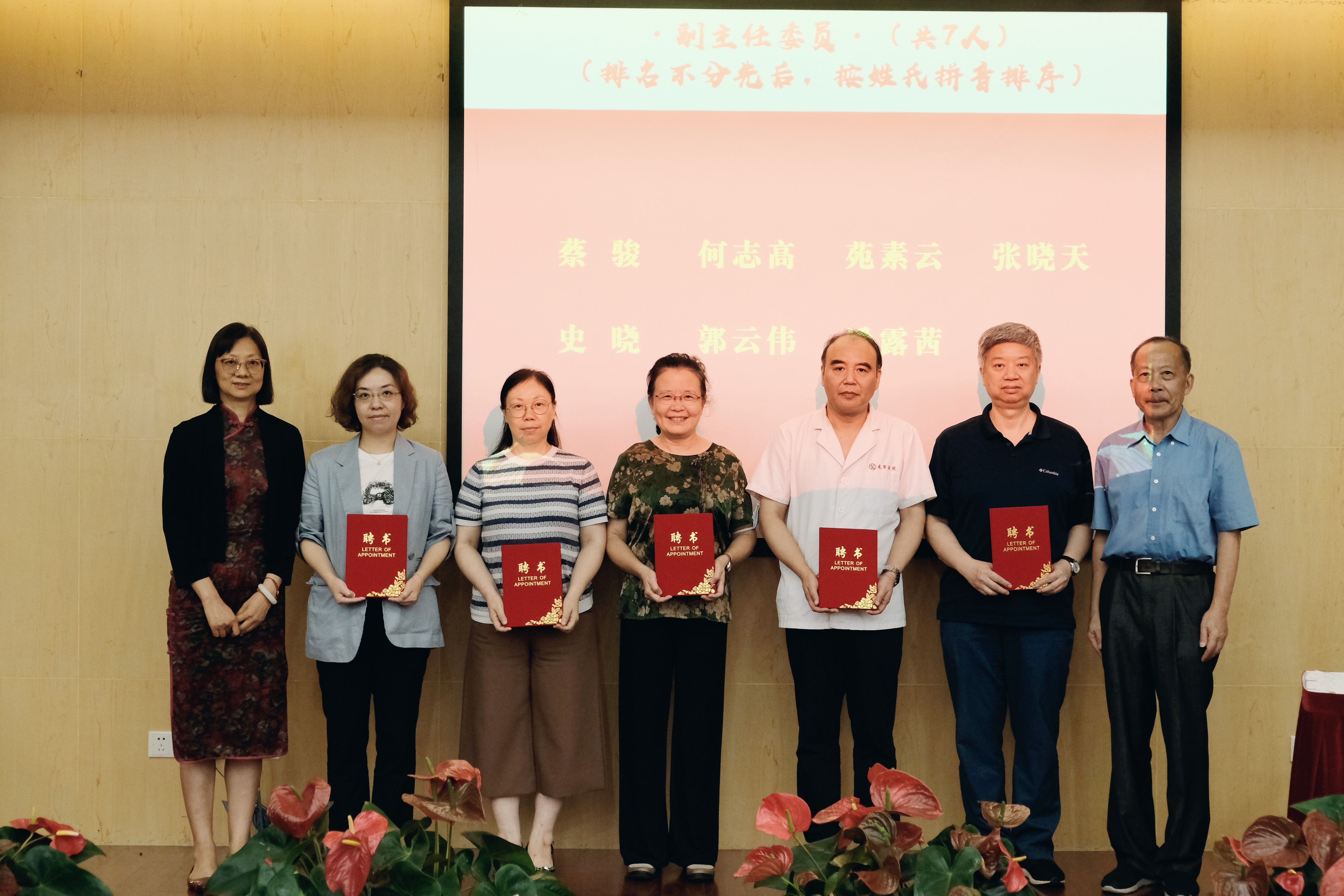 陈晓蓉主持选举并宣读新一届膏方专业委员会名誉主任委员、主任委员、7位副主任委员,23位常务委员及47位委员名单,并邀请施杞、陶建生一同为名誉主任委员周端、主任委员顾耘、副主任委员蔡骏、郭云伟、何志高、潘露茜、史晓、苑素云、张晓天(按姓氏拼音排序)颁发聘书。