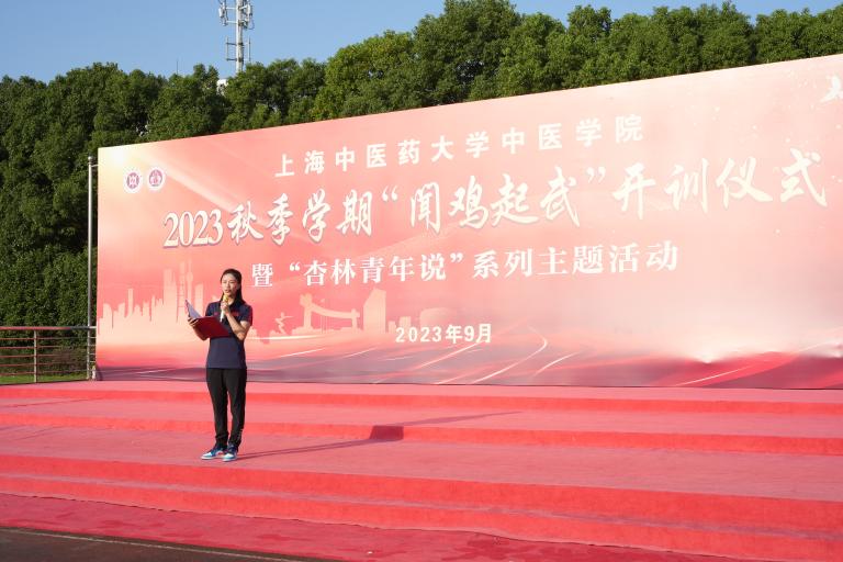 晨起闻鸡鸣,“武”动正青春。9月19日,中医学院在学校体育场举行2023秋季学期“闻鸡起武”开训仪式暨“杏林青年说”系列主题活动。中医学院党委书记夏文芳、党委副书记陆佩丽、副院长李海峰,体育部国际武术交流中心主任王宾,学校心理咨询中心谌誉,学院全体学生辅导员以及2023级全体本科新生等近250人参加。活动由中医学(屠呦呦班)蔡嘉姮和中医学(五年制)欧阳冠夫主持。