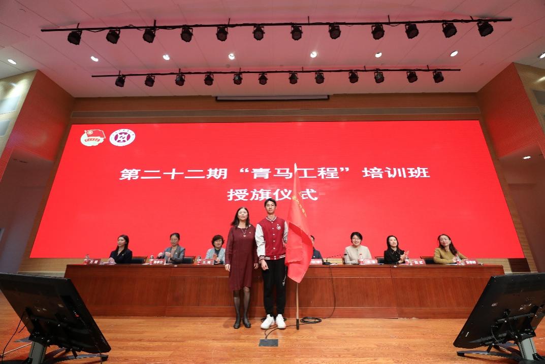 朱惠蓉为第二十二期青年马克思主义学习班学员代表授旗。