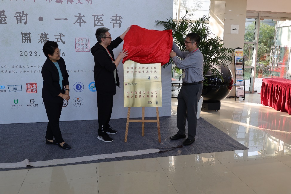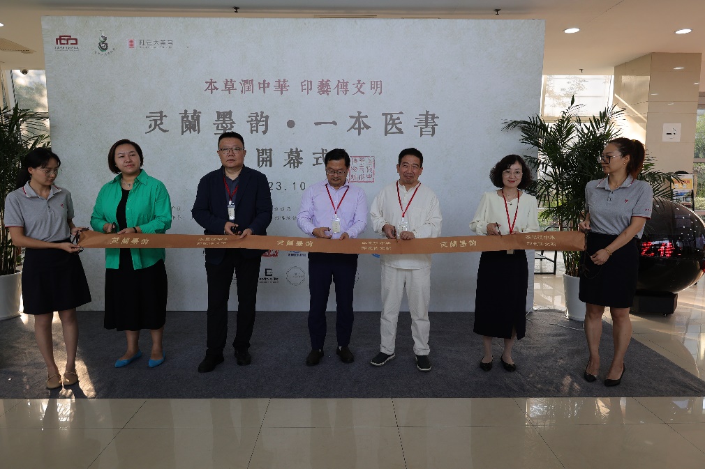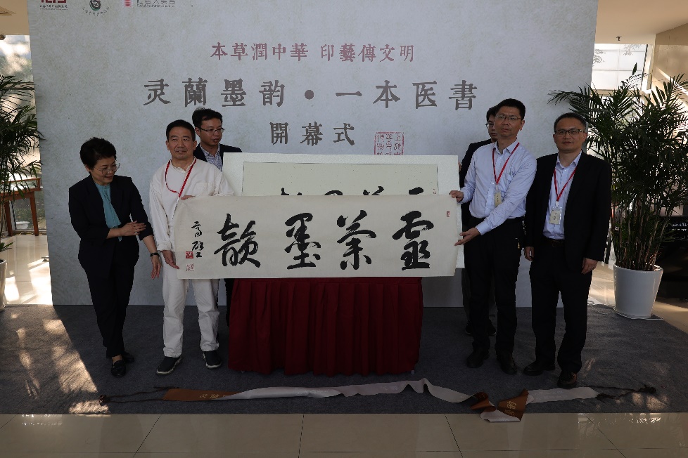 书法家高壁向两家博物馆赠送书法作品以祝贺“文化共建”战略协议的签署。其中一幅作品作为展品随即在“灵兰墨韵•一本医书”联展展出。开幕式上,嘉宾为两家博物馆合力打造的“中华优秀传统文化联合传播实践基地”揭牌,启动 “灵兰墨韵、一本医书” 绿色可持续文创愿景首发,并为联展剪彩。