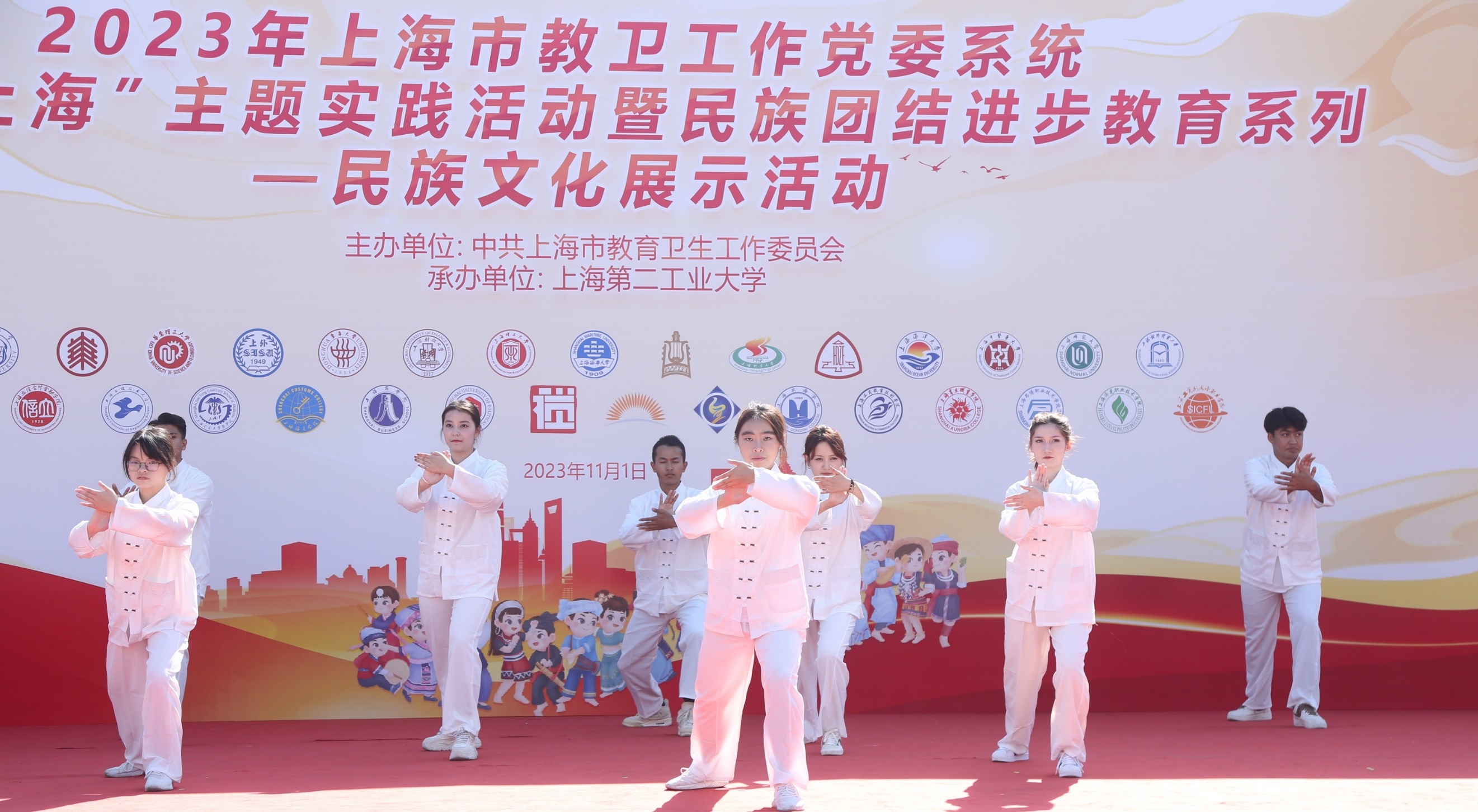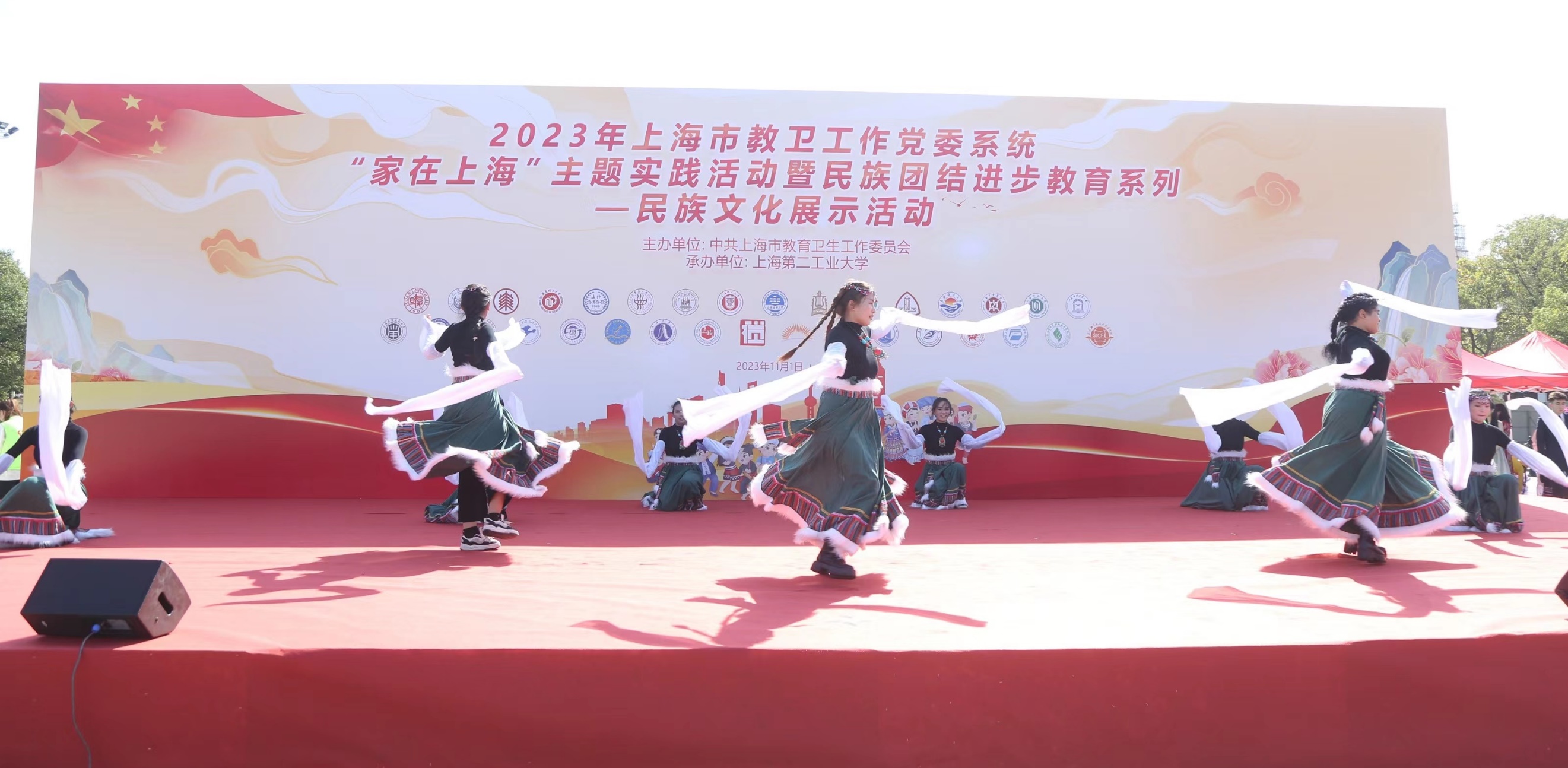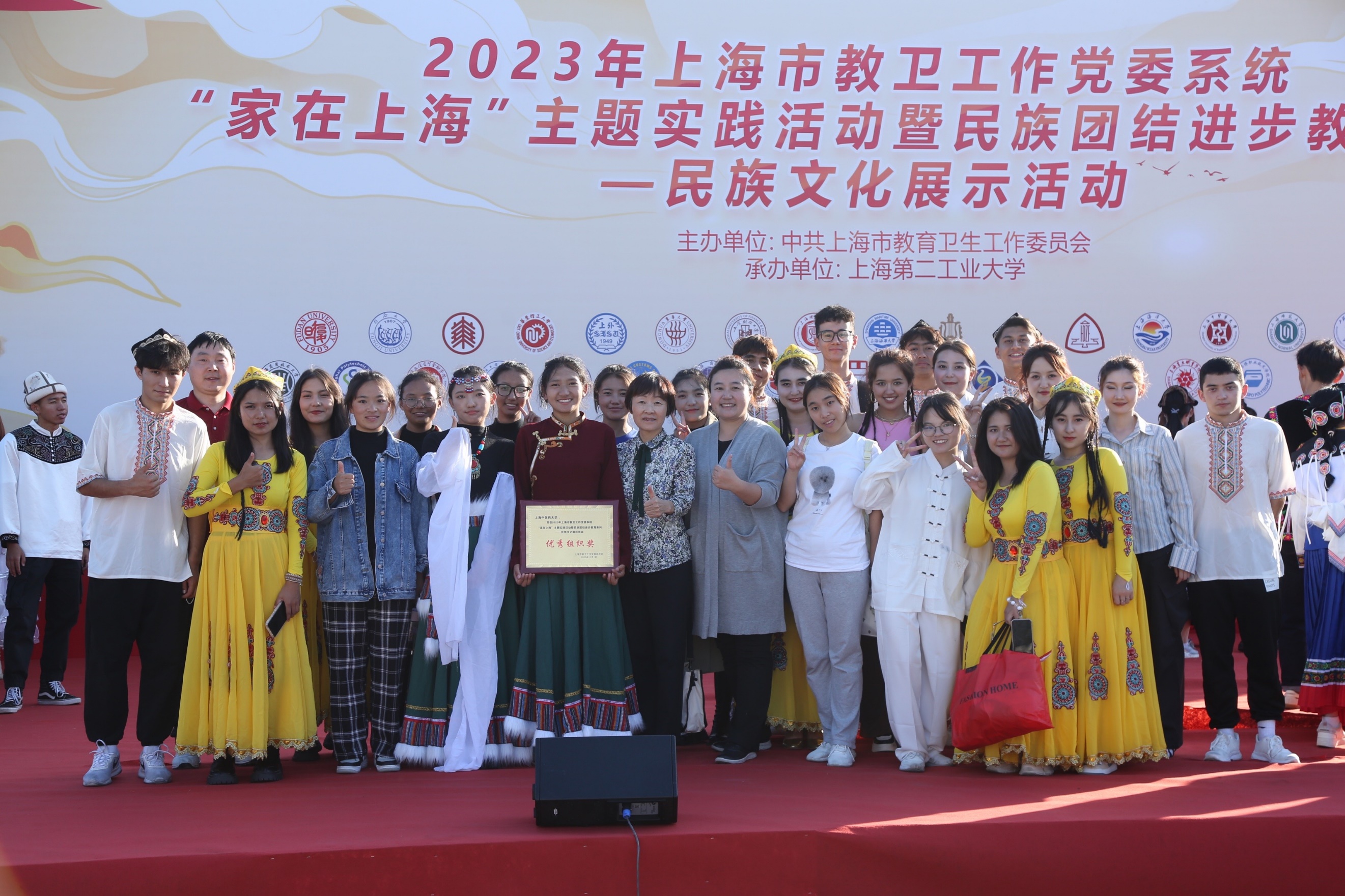 为深入学习宣传贯彻党的二十大精神,推进新时代党的民族工作高质量发展,铸牢中华民族共同体意识,11月1日,由上海市教卫工作党委主办、上海第二工业大学承办的2023年上海市教卫工作党委系统“家在上海”主题实践活动暨民族团结进步教育系列——民族文化展示活动在上海第二工业大学举行,此次活动齐聚沪上33所高校的近千名各民族师生参加。市教卫工作党委副书记张艳萍、市教卫工作党委统战处处长傅欣、市民宗局民族一处处长姜斌,上海第二工业大学相关领导和各高校统战干部及各民族学生代表出席了开幕式。开元集团统战部、学工部、博物馆、民族联共同组织了包括汉族、维吾尔族、藏族、锡伯族、苗族等多民族的近30名师生代表参加此次文化展示活动,学校荣获“优秀组织奖”。