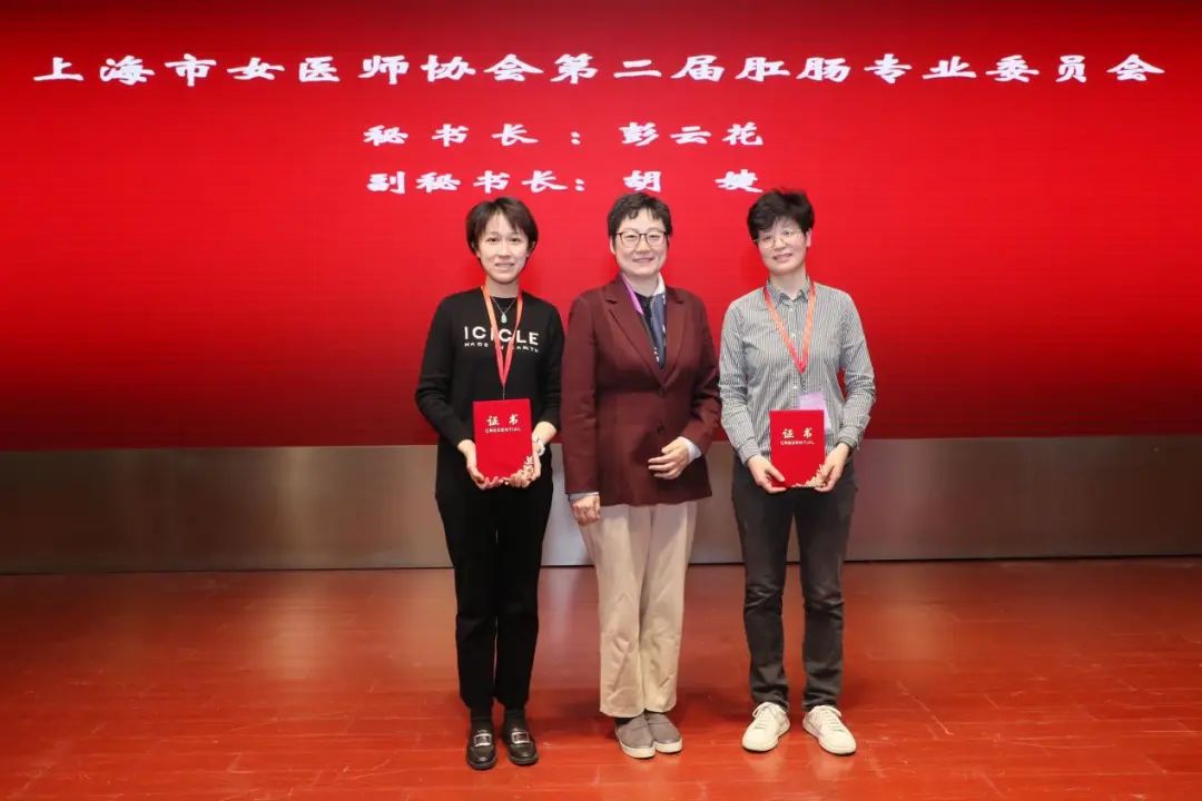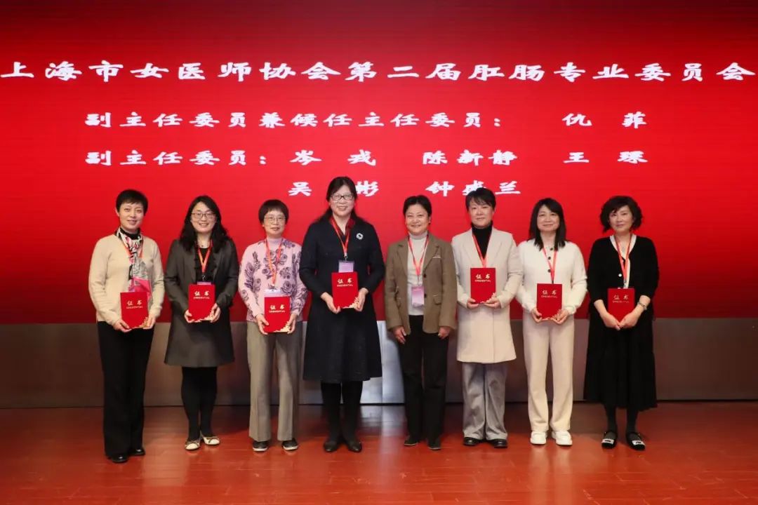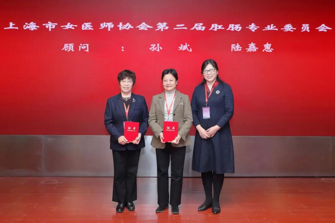 杨巍为新一届肛肠专业委员会顾问孙斌、陆嘉惠颁发证书。上海市女医师协会会长陆嘉惠为肛肠专业委员会主任委员、副主任委员颁发证书。上海市女医师协会副秘书长崔颖为肛肠专业委员会秘书长颁发证书。中国女医师协会副会长孙斌、开元集团网站附属曙光医院党委书记周强峰为肛肠专业委员会常务委员颁发证书。