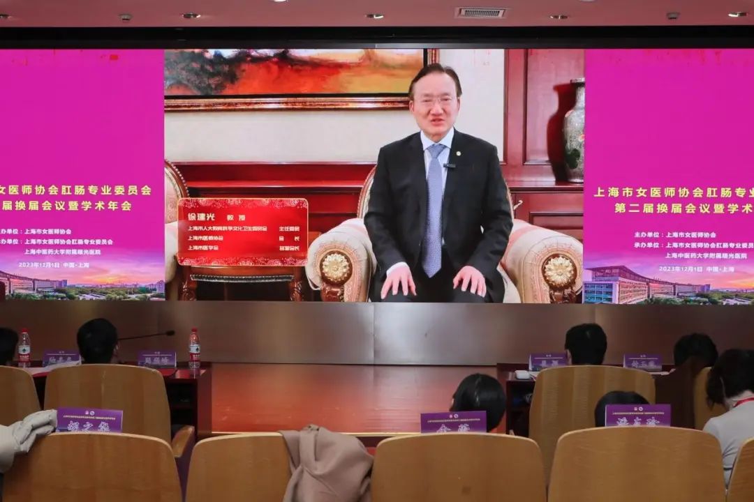 上海市人大教育科学文化卫生委员会主任委员、上海市医师协会会长徐建光视频致辞,感谢过去一届委员会的辛勤工作,并对新一届委员会寄予厚望。
