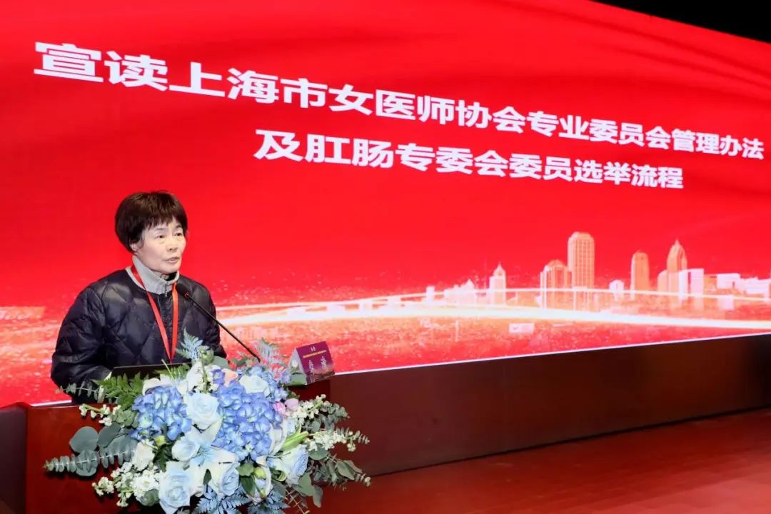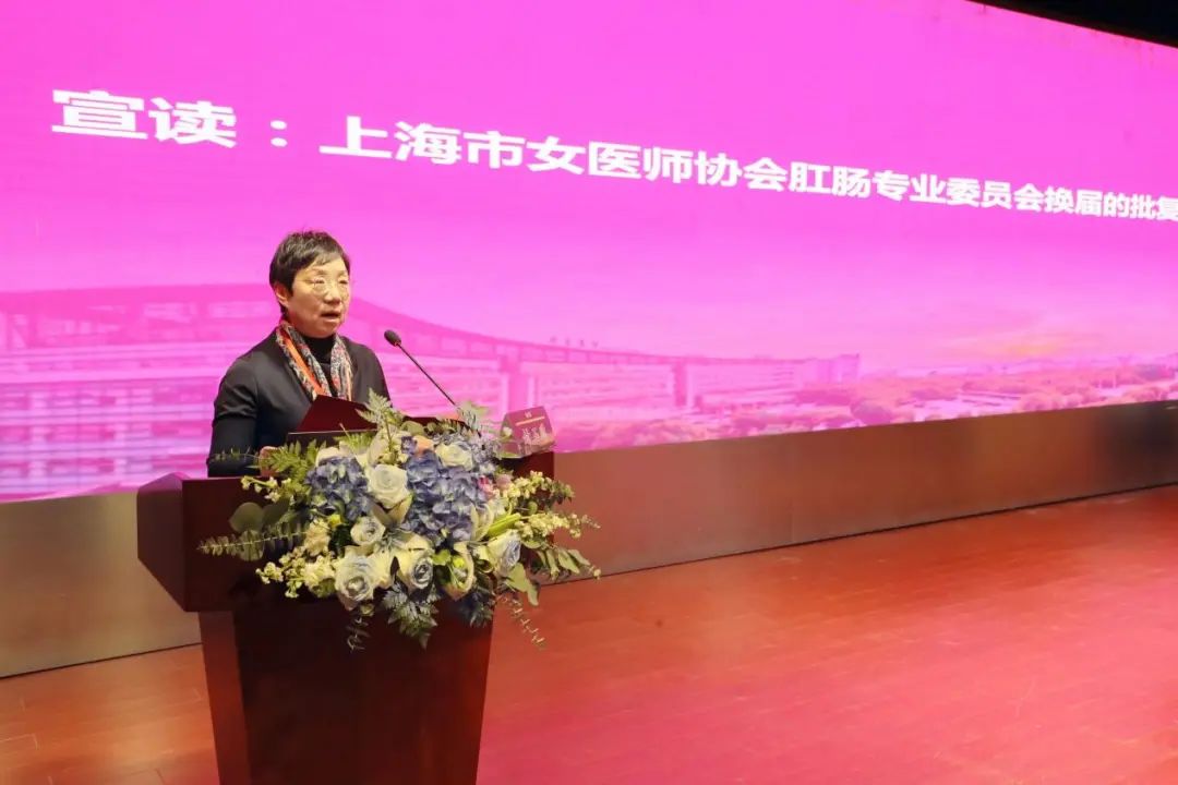 上海市女医师协会理事封玉琳宣读上海市女医师协会肛肠专业委员会换届的批复。