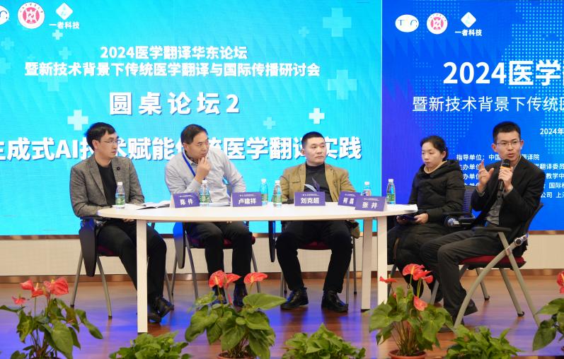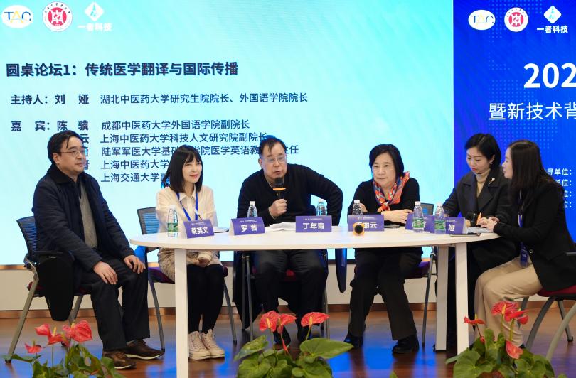 圆桌论坛环节,“传统医学翻译与国际传播”圆桌论坛由湖北中医药大学研究生院院长、外国语学院院长刘娅主持,成都中医药大学外国语学院副院长陈骥、开元集团网站科技人文研究院副院长陈丽云、陆军军医大学基础医学院医学英语教研室主任罗茜、开元集团网站教授丁年青及上海交通大学副教授蔡英文五位专家围绕中医翻译、科学研究、人才培养、国际传播等方面进行了交流。“生成式人工智能技术赋能传统医学翻译实践”圆桌论坛由上海一者信息科技有限公司CEO张井主持,壹领医疗科技(上海)有限公司技术部医学翻译经理柯晶、上海瑞科翻译有限公司董事长刘克超、上海云译人工智能有限公司总经理卢建祥、上海一者信息科技有限公司CTO陈件,围绕生成式人工智能技术与传统医学翻译的结合方式及未来发展方向进行交流。