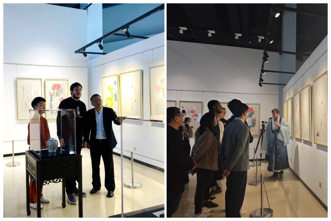 随后,国际学生前往上海中医药博物馆观赏“岐黄丹青 造福人类——陈家泠中草药艺术书画与《本草纲目》展”,通过博物馆讲解员摩尔多瓦籍国际学生大礼物的讲解,学生们在中草药艺术书画与《本草纲目》中感受中医药文化与艺术精粹的交融。展览中,岐黄医学的精髓被艺术家化为绘画作品,不仅展示出了博大精深的中医药传统知识,以及匠心独运的艺术魅力,更透露出对人类健康的探索与关怀,彰显了中医药学对于世界人类健康福祉的贡献。