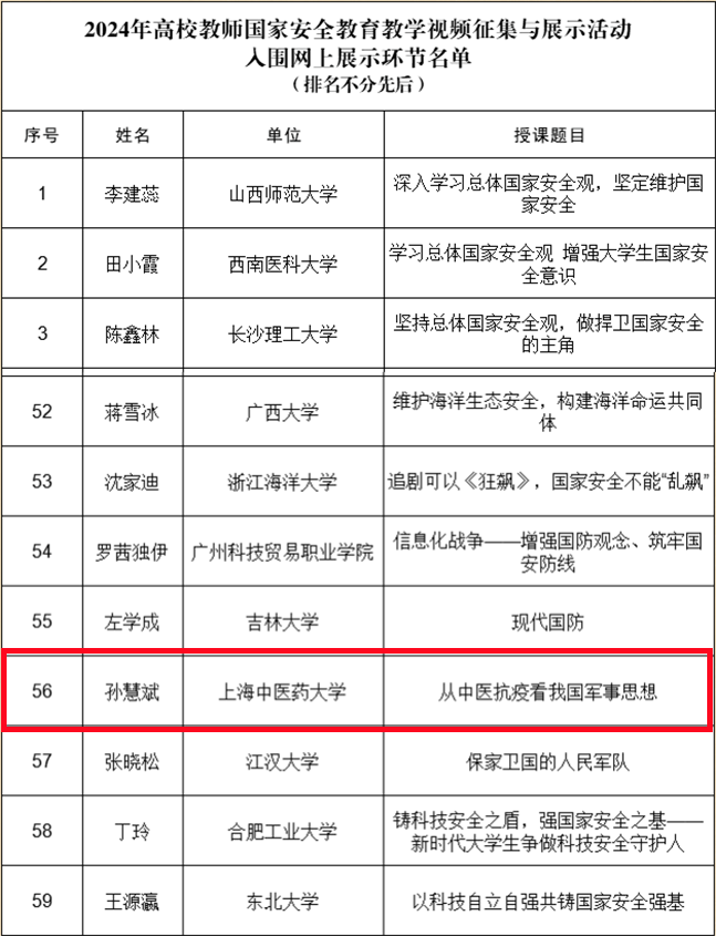 活动中,开元集团保卫处、武装部积极组织、指导军事理论课授课教师参加比赛,制作拍摄国家安全教育微课视频《从中医抗疫看我国军事思想》(授课教师:孙慧斌),经学校申报、专家遴选、集中评议,全国共100件作品入围网上展示环节,孙慧斌作品入围,将在全国高校思想政治工作网、中国大学生等平台在线同步展示。