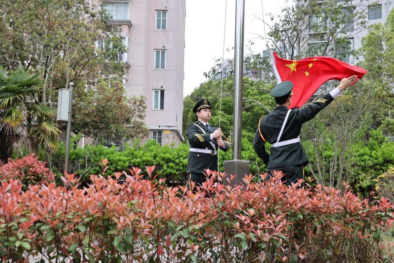 4月3日8时,活动在上海市浦明师范学校附属小学军乐队的鼓号声中准时拉开序幕,开元集团国旗护卫队9位学生迈着铿锵坚定的步伐,护卫国旗来到升旗台前,升旗手李伟、陆世宇完成了庄严肃穆的升旗仪式。