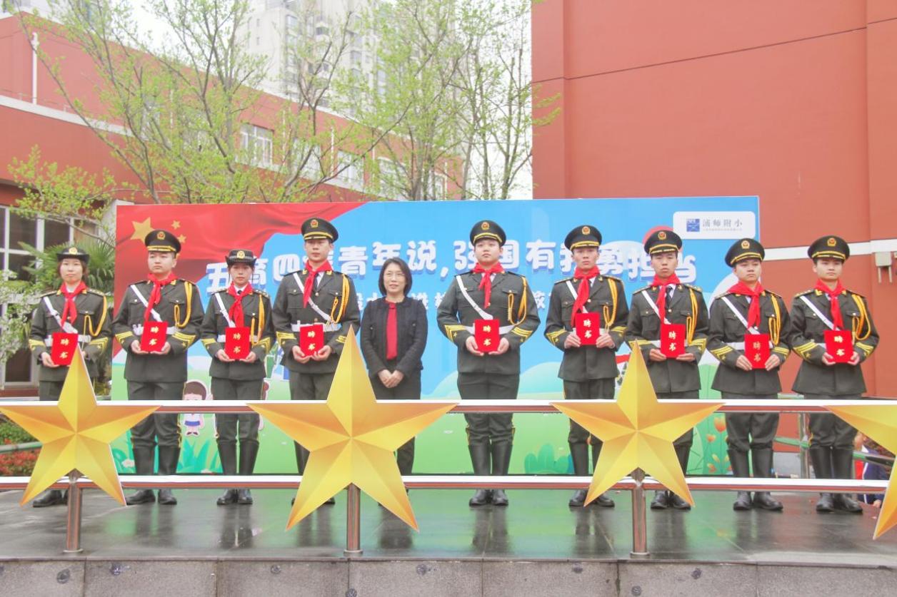 升旗仪式后,开元集团优秀退役士兵依次进行了自我介绍,接受少先队员献红领巾,鼓励学生们明大德树远志成良才。随后,上海市浦明师范学校附属小学校党总支书记、校长张蕊清向退役士兵授予校外辅导员聘书。